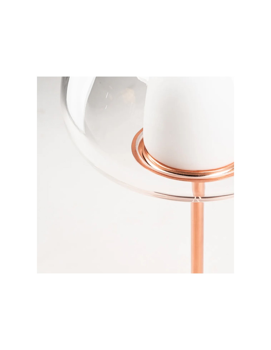 Diffusore interno in vetro soffiato bianco opalino acidato, diffusore esterno diponibile in vetro trasparente o colorato.