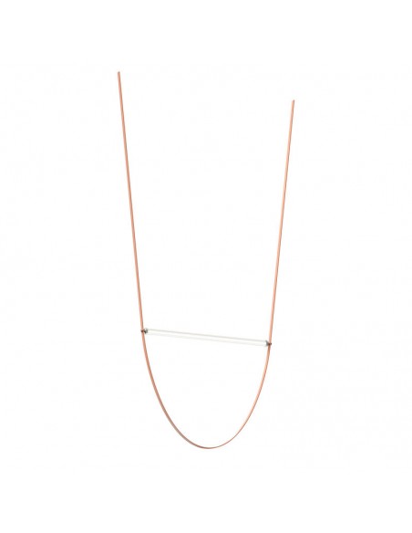 Lampada a sospensione a luce diffusa. Tubolare in vetro estruso trasparente e diffusore interno in PC opale. Ghiere realizzate con tecnologia CNC in Inox satinato. Cavo estruso in gomma rosa e verde bosco. Rosone in PC stampato a iniezione nelle medesime finiture del cavo. Lelettronica integrata nel rosone consente lutilizzo di diversi sistemi di dimerizzazione: push, 1-10, potenziometro, DALI. Nel caso di assenza di questi sistemi si può settare il flusso luminoso in fase di installazione, con sistema push incluso nel rosone. Lunghezza utile del cavo 3mt.