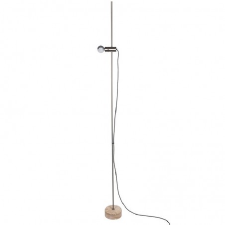 La lampadina è montata su di un meccanismo scorrevole , la base è in travertino .