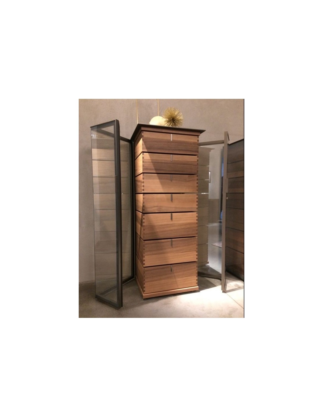 Ala è il settimanale di Rimadesio con un senso estetico d'eccezione ed una scelta di materiali eccellente.La vetrina si apre a modi scrigno prezioso quasi a viaggiare su un epoca di tesori e artigianato.I cassetti, in essenza di noce, fluttuanti su struttura e con costruzione a coda di rondine esaltano questo tono di classicità che si fonde alle linee moderne di costruzione.