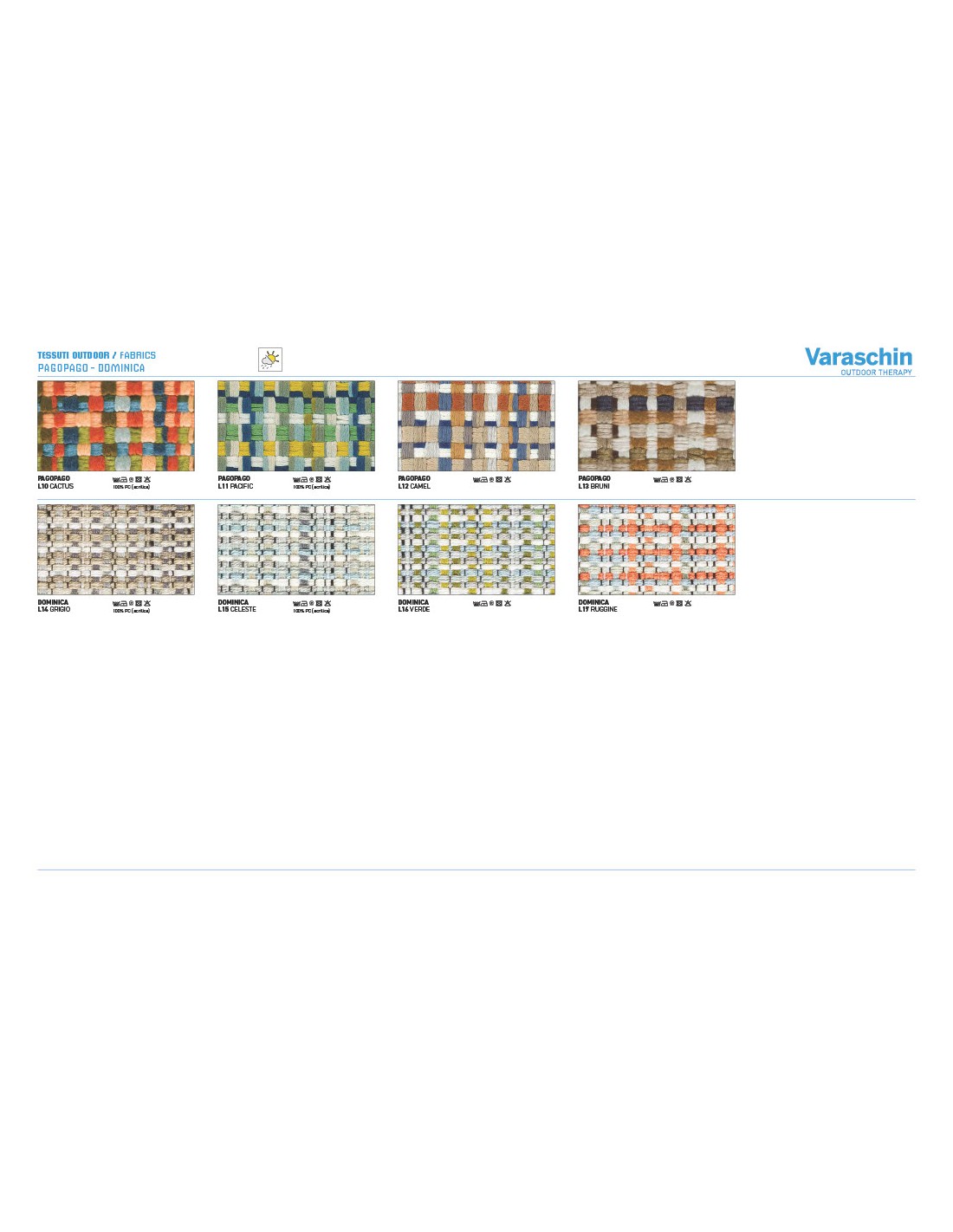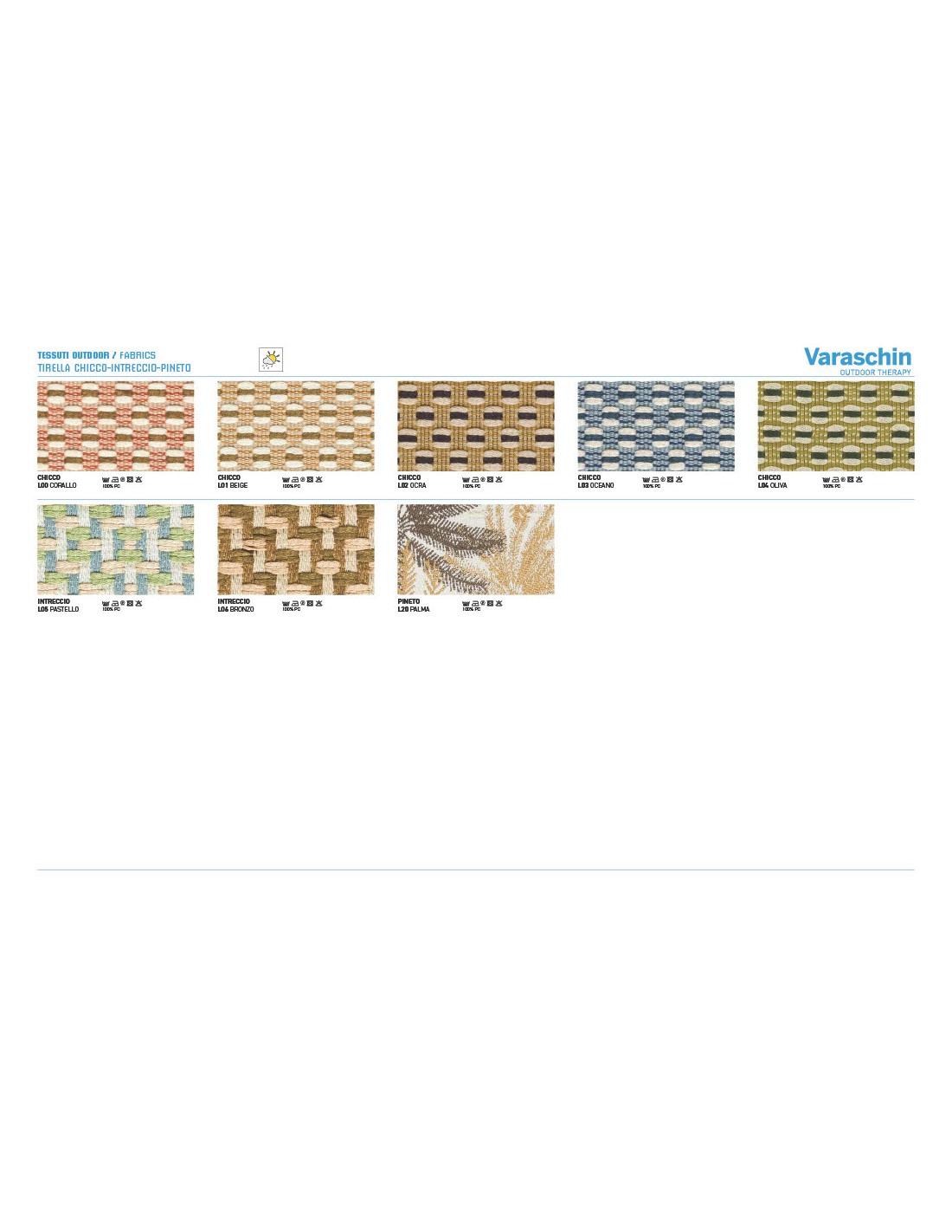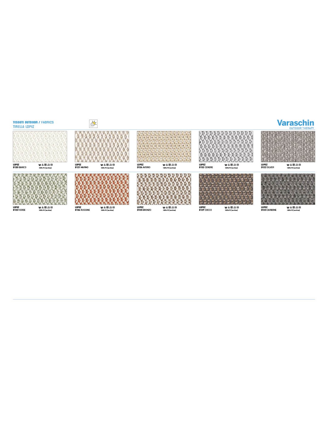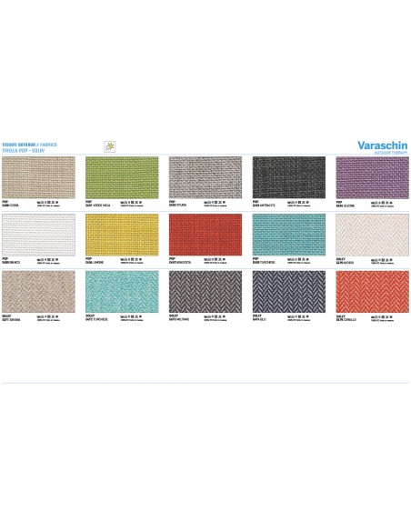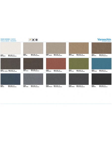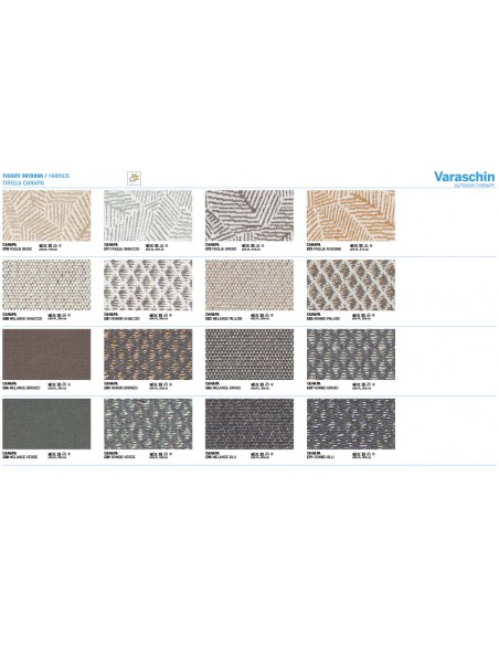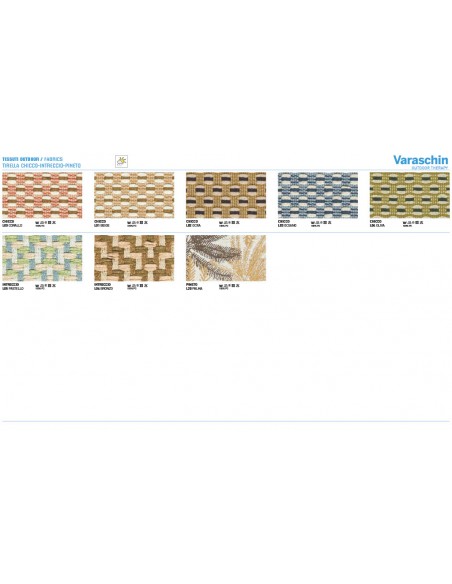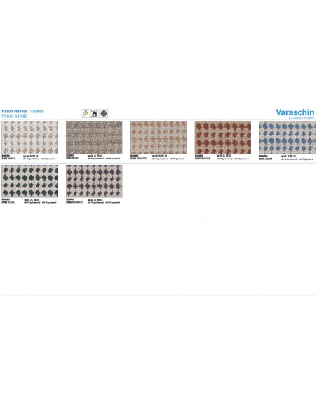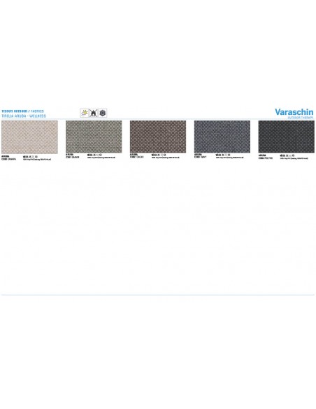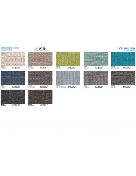 - Rivestimenti cuscini: Disponibili in molte categorie di tessuto outdoor Varaschin