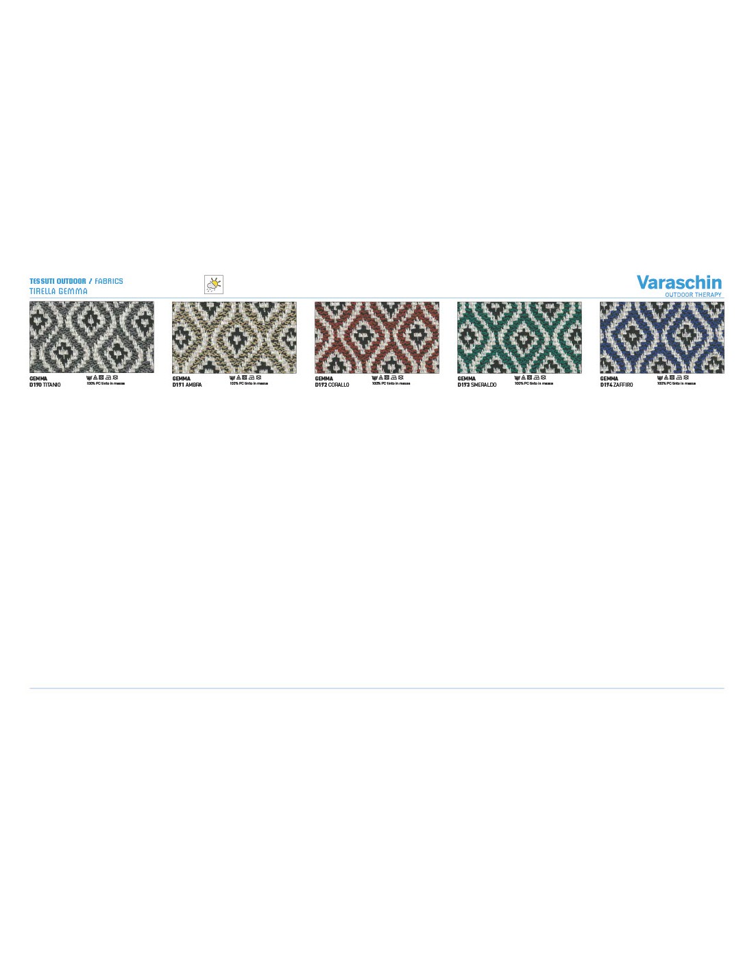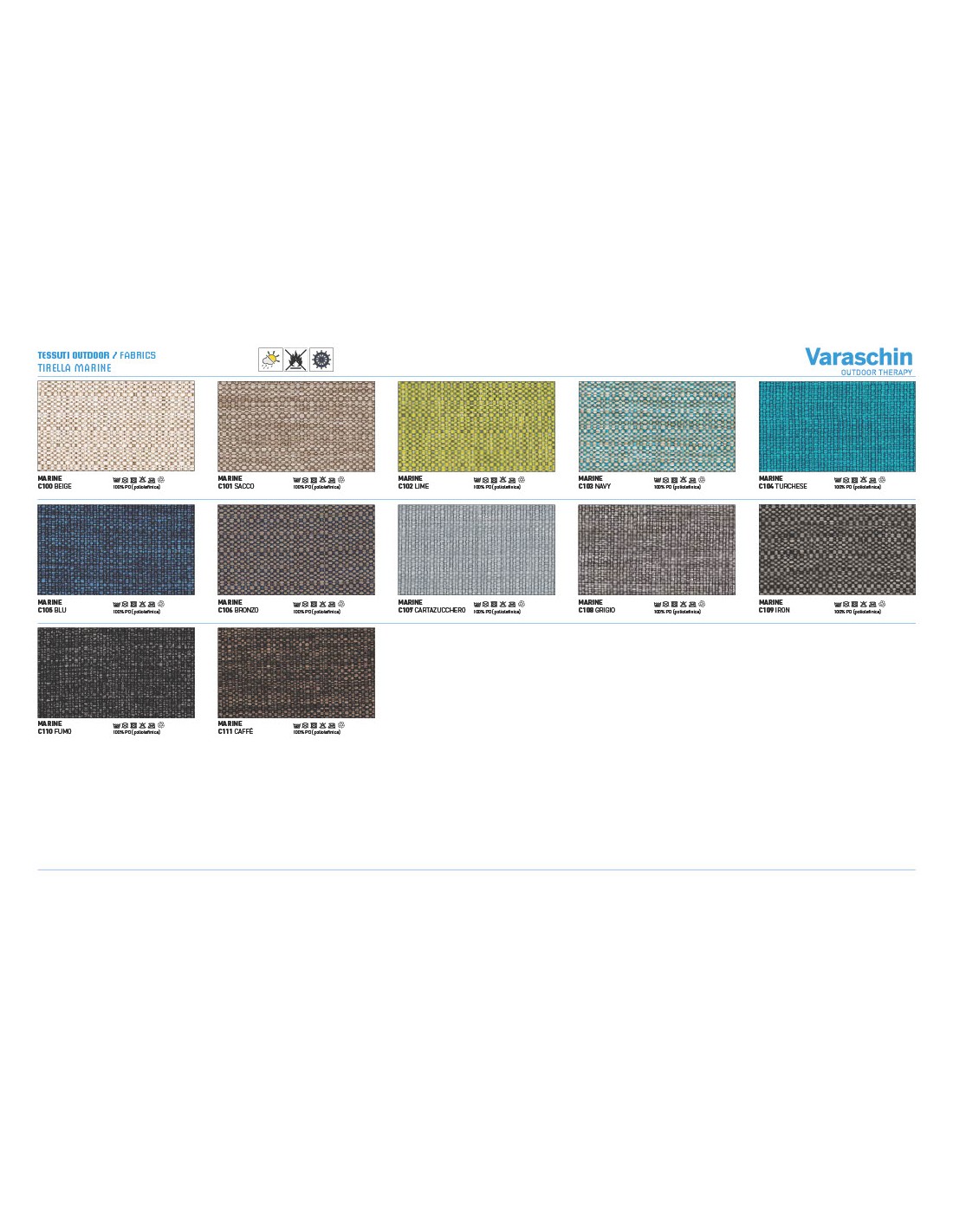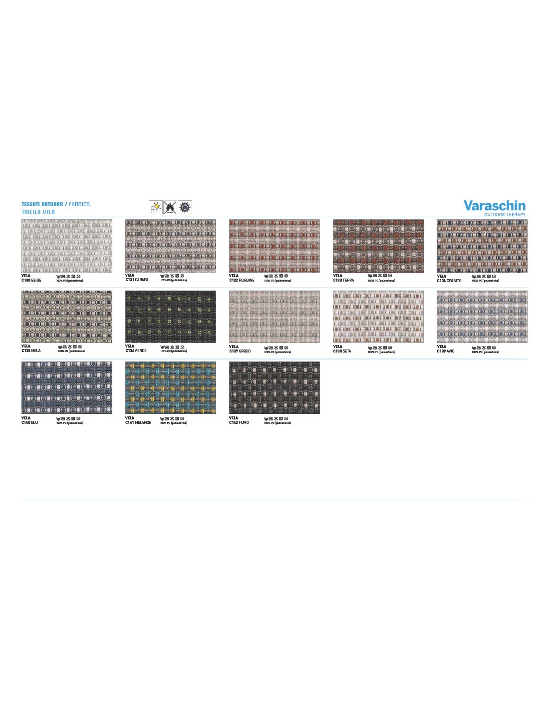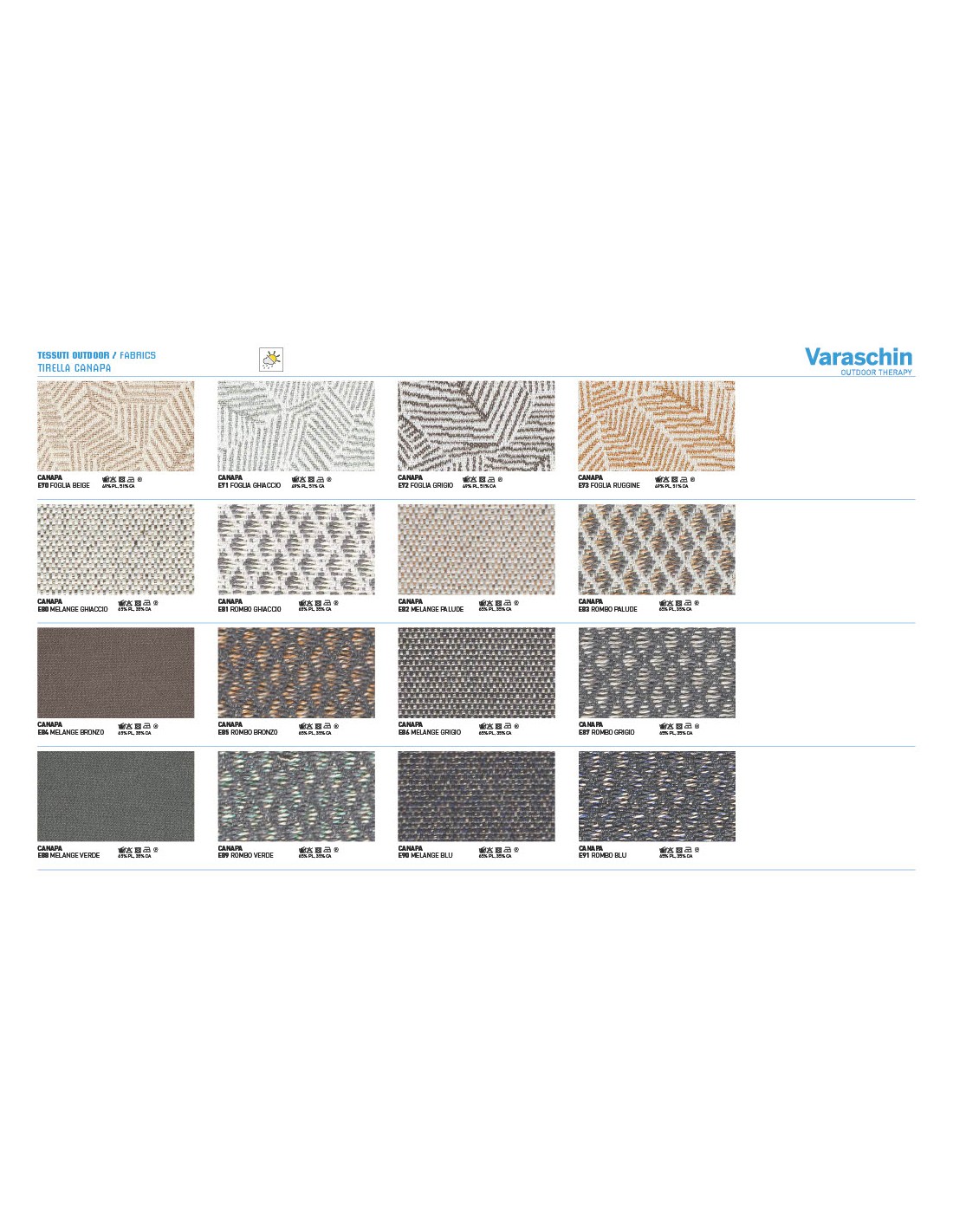 - Rivestimenti cuscini: Disponibili in molte categorie di tessuto outdoor Varaschin