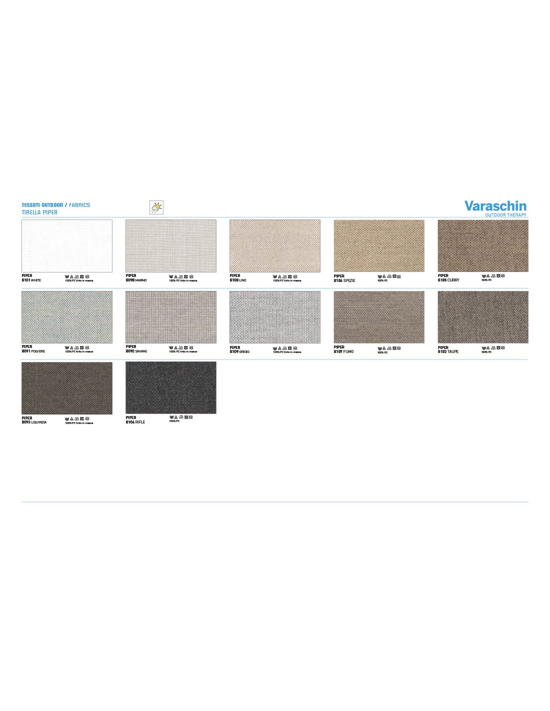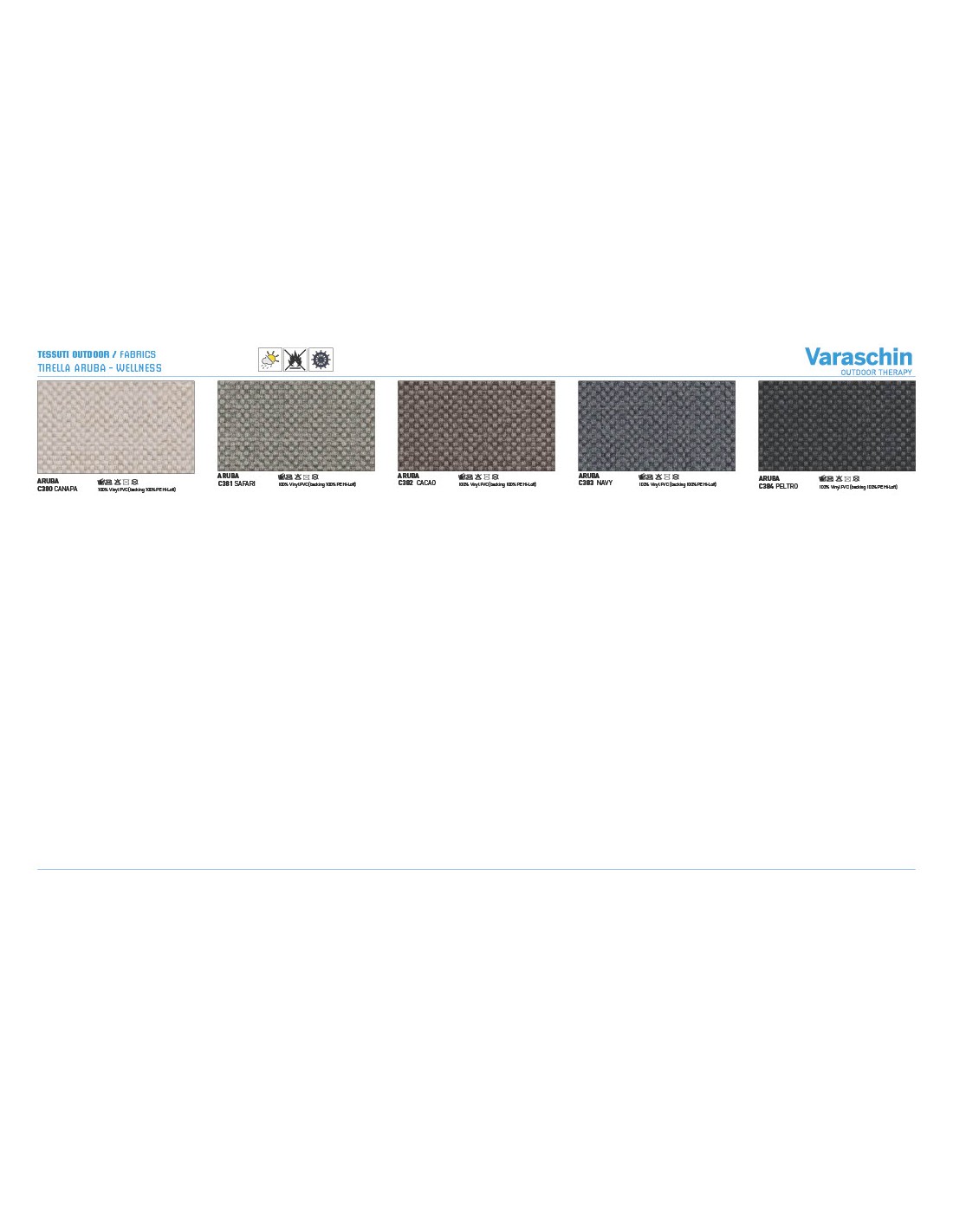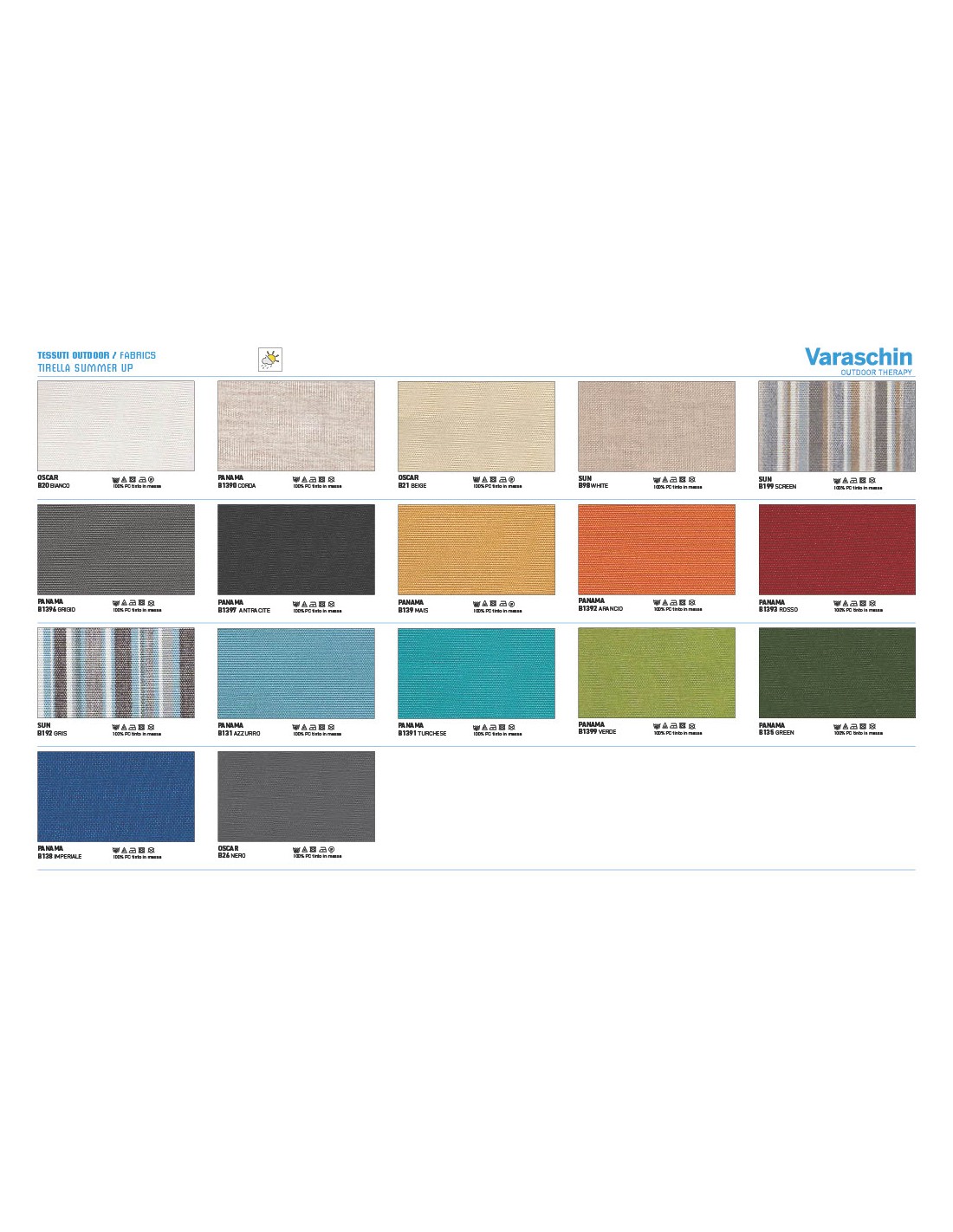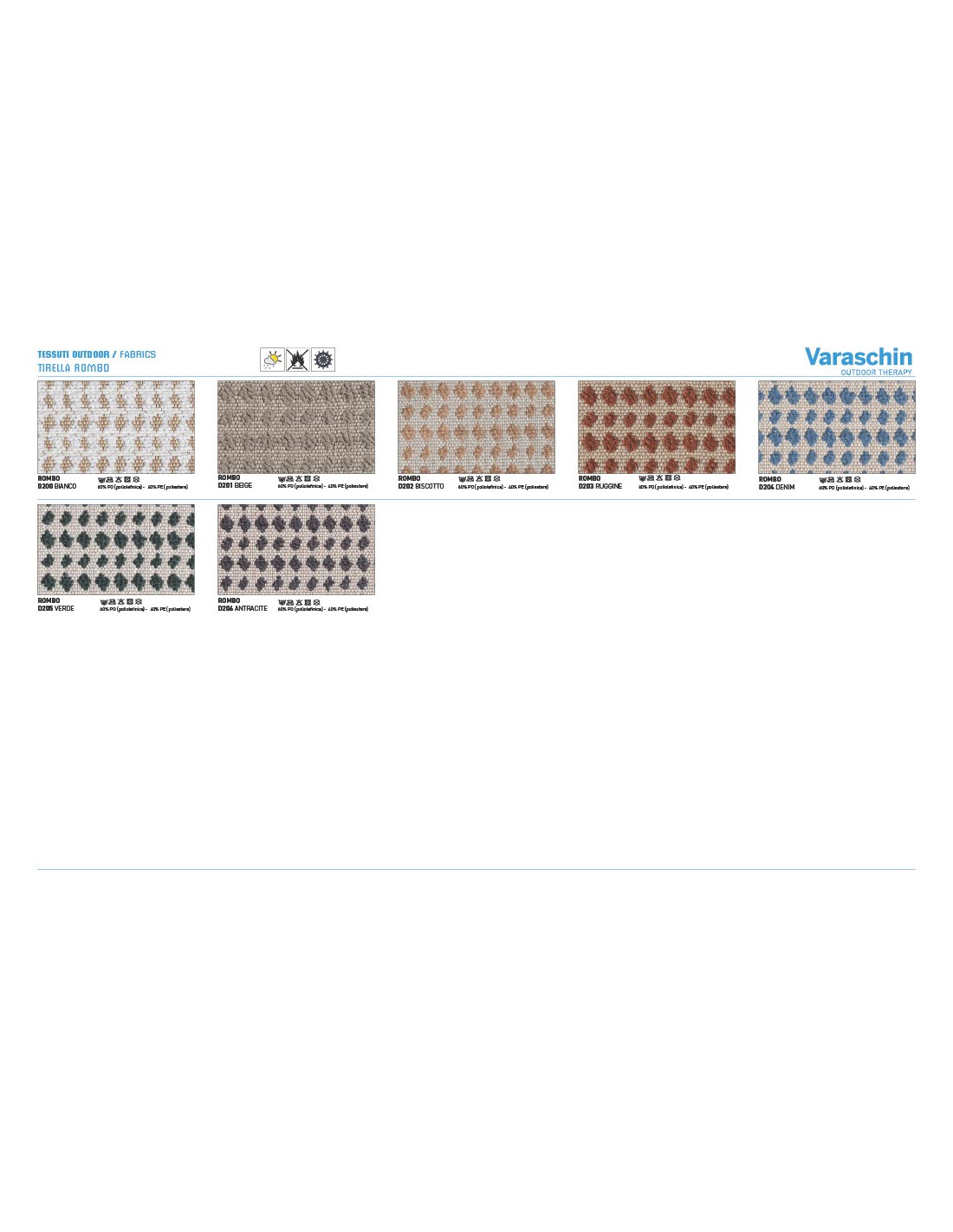 - Rivestimenti cuscini: Disponibili in molte categorie di tessuto outdoor Varaschin
