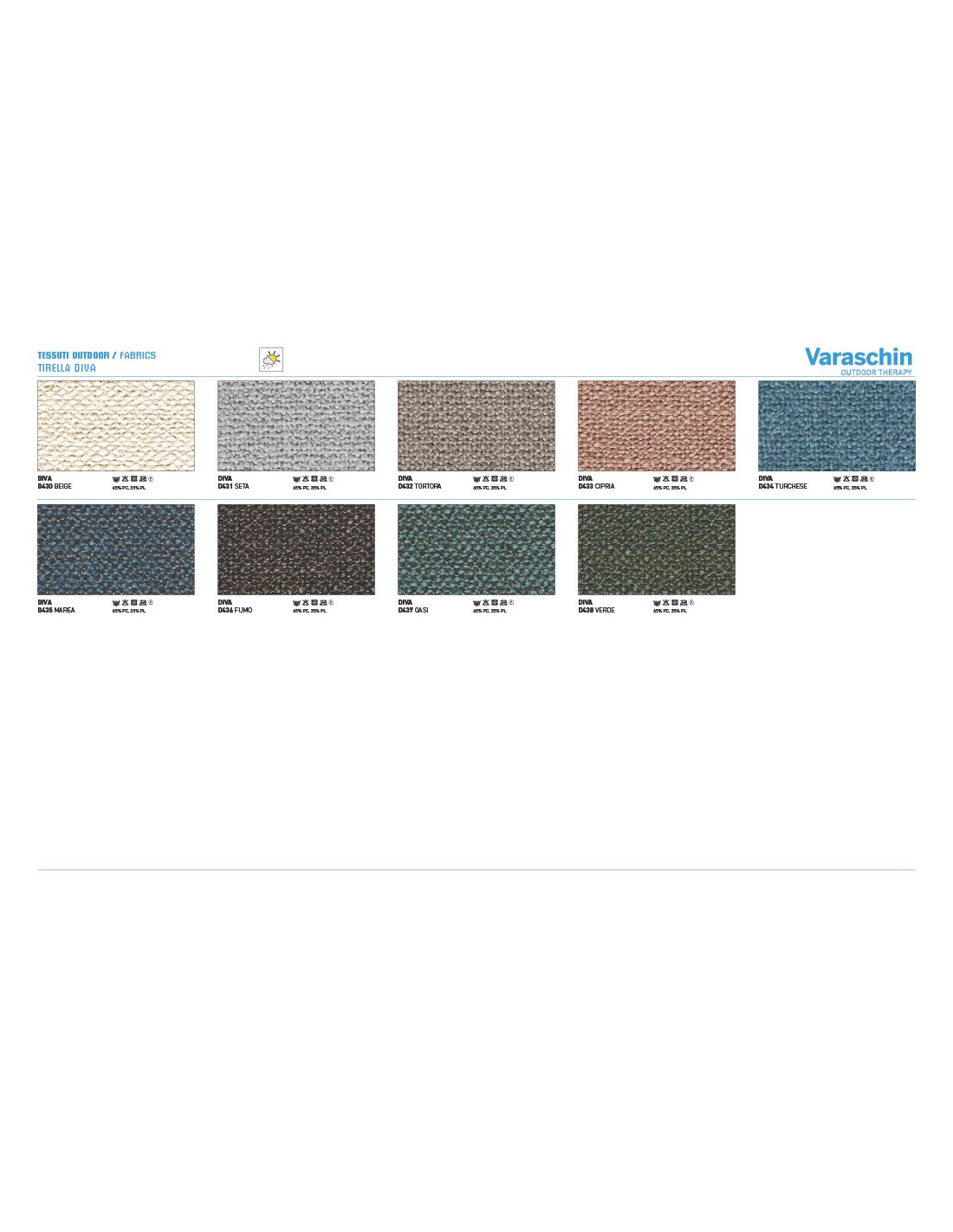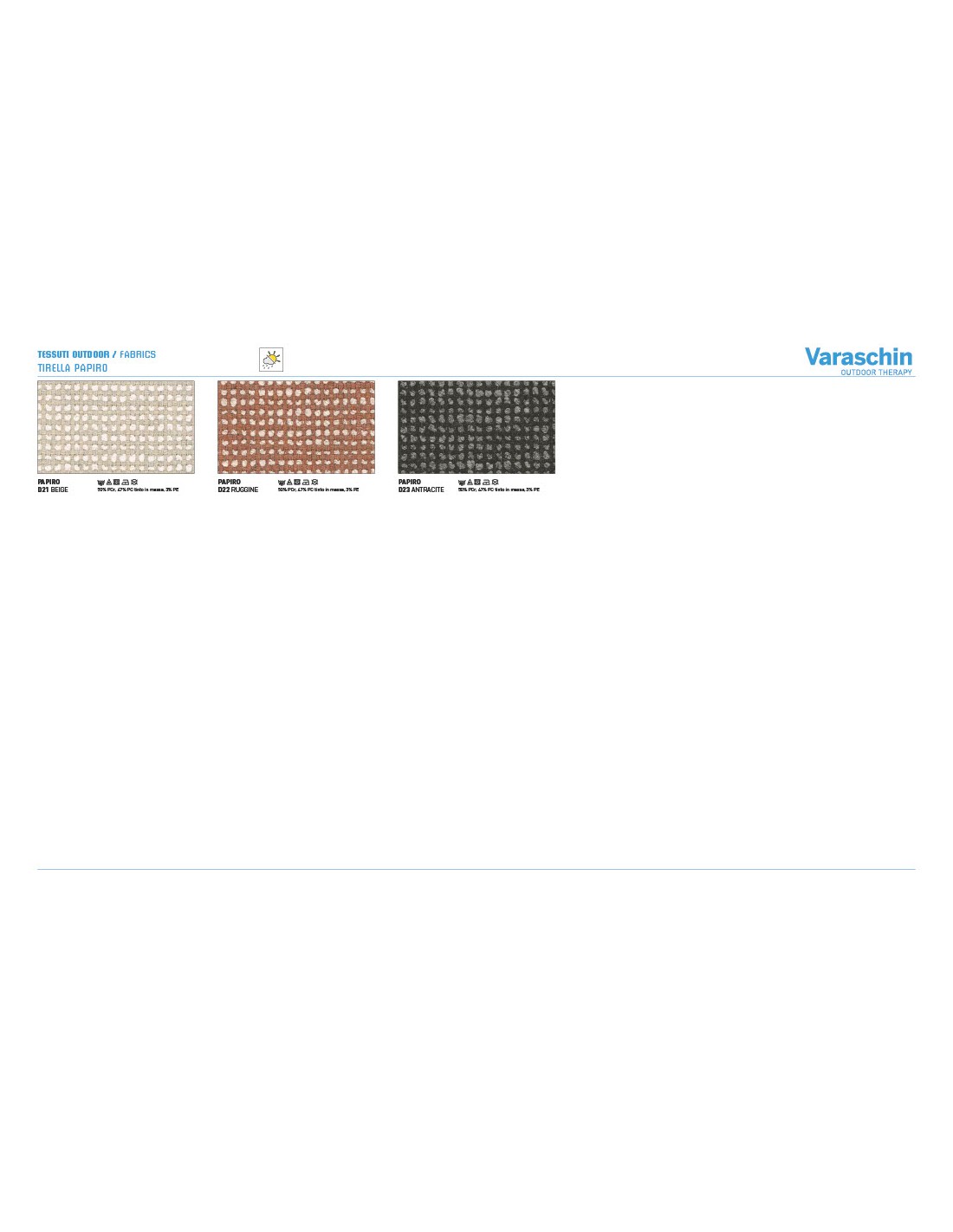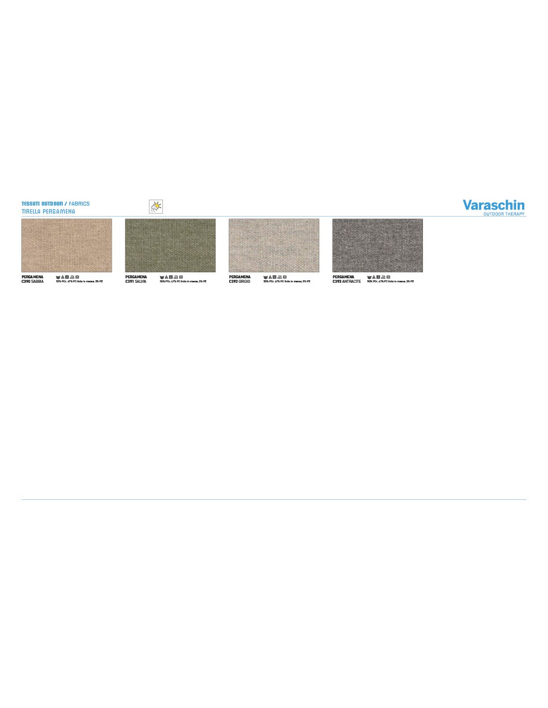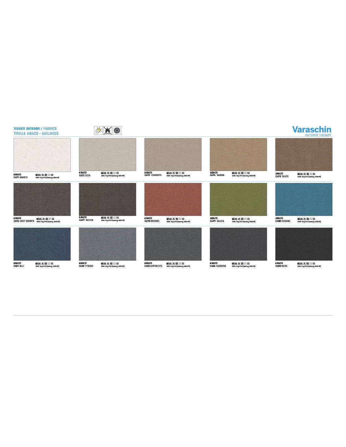 - Rivestimenti cuscini: Disponibili in molte categorie di tessuto outdoor Varaschin
