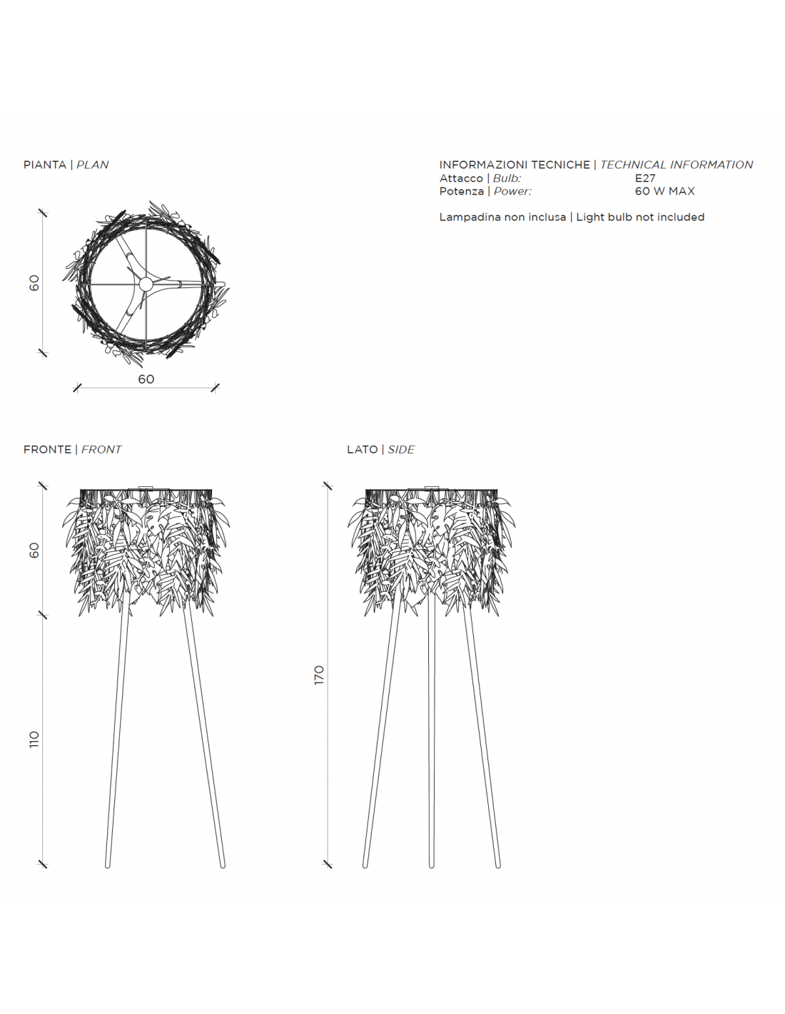 - Dimensioni: H. 170 x L. 60 x P. 60 (cm)