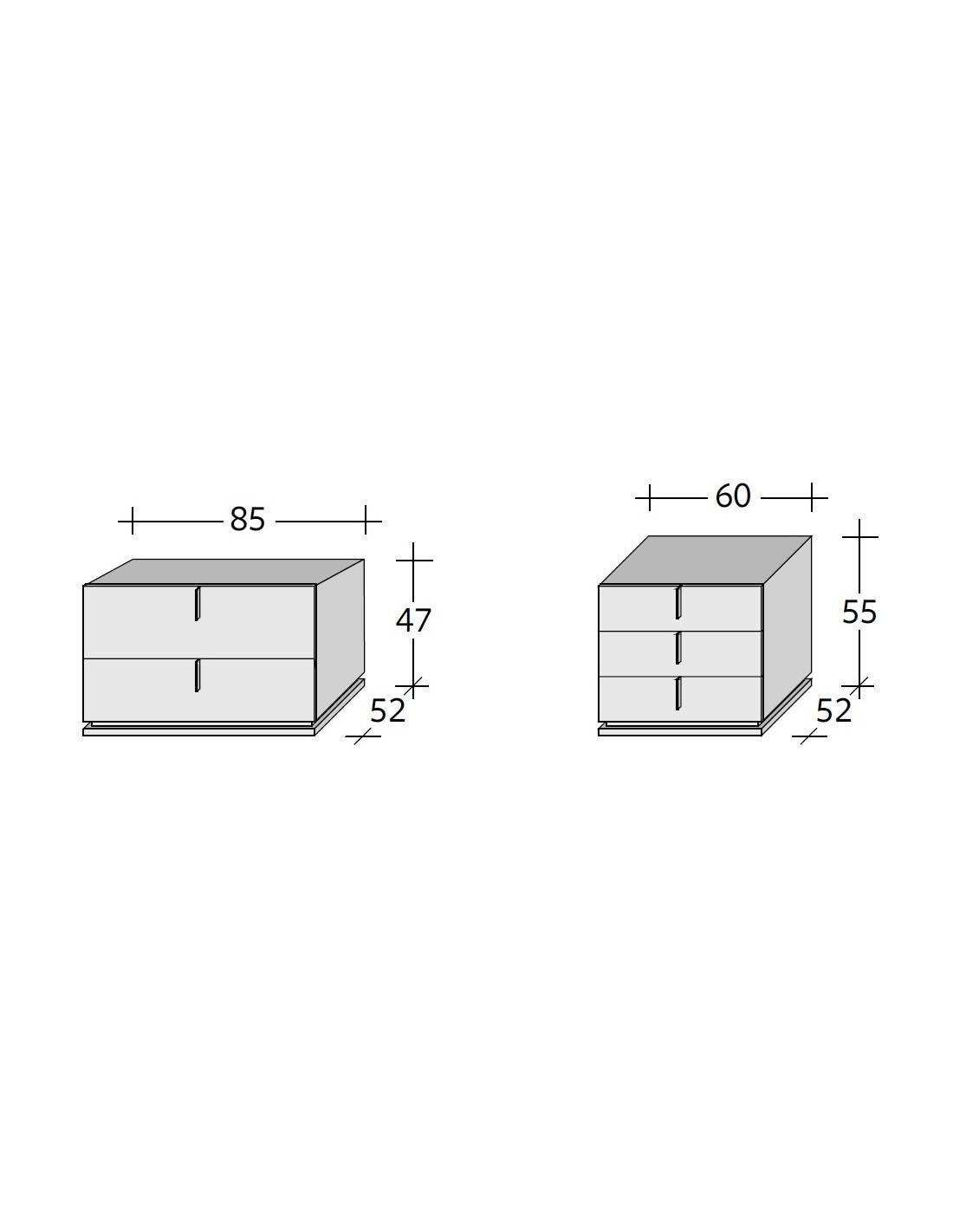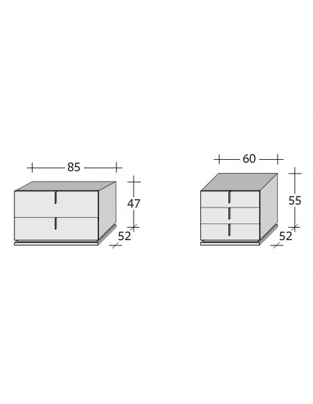 - Dimensioni : COMODINO 2 CASSETTI L 85 x P 52 x 47 H