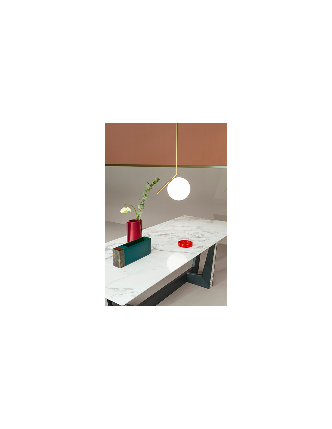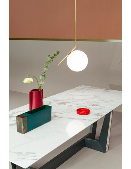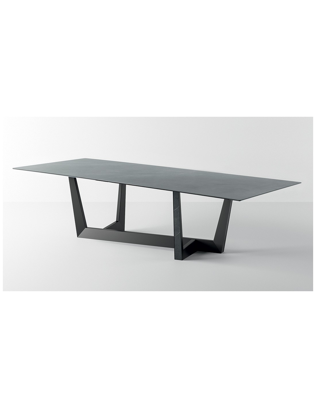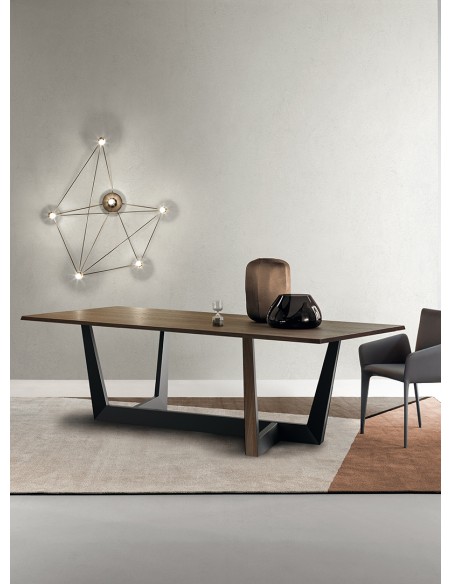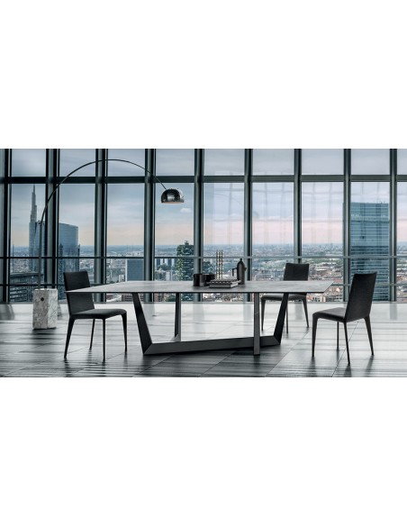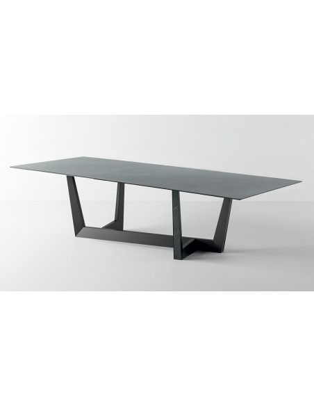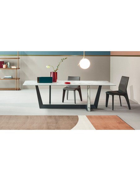 Il tavolo Art è espressione di un'intuizione progettuale lucida e razionale, come la geometria a cui il designer Gino Carollo si è ispirato. La base è l'elemento che lo caratterizza maggiormente: costituita da un trapezio in metallo che si sviluppa diagonalmente rispetto al piano, ottimizza l'ingombro a favore di uno spazio di utilizzo maggiore. Si contraddistingue inoltre, per l’elevato dinamismo, la solidità e l’impatto scultoreo. Il piano vi si poggia saldamente, ma l’effetto finale è di grande leggerezza. La base di Art è realizzata in metallo verniciato ed è disponibile in numerosi varianti cromatiche, inoltre può essere personalizzata con inserti nella stessa finitura del piano, per garantire ulteriore coerenza. Il piano (rettangolare in questa versione) è disponibile anche rotondo, a botte oppure allungabile. È proposto in diversi materiali: ceramica, cristallo o legno.