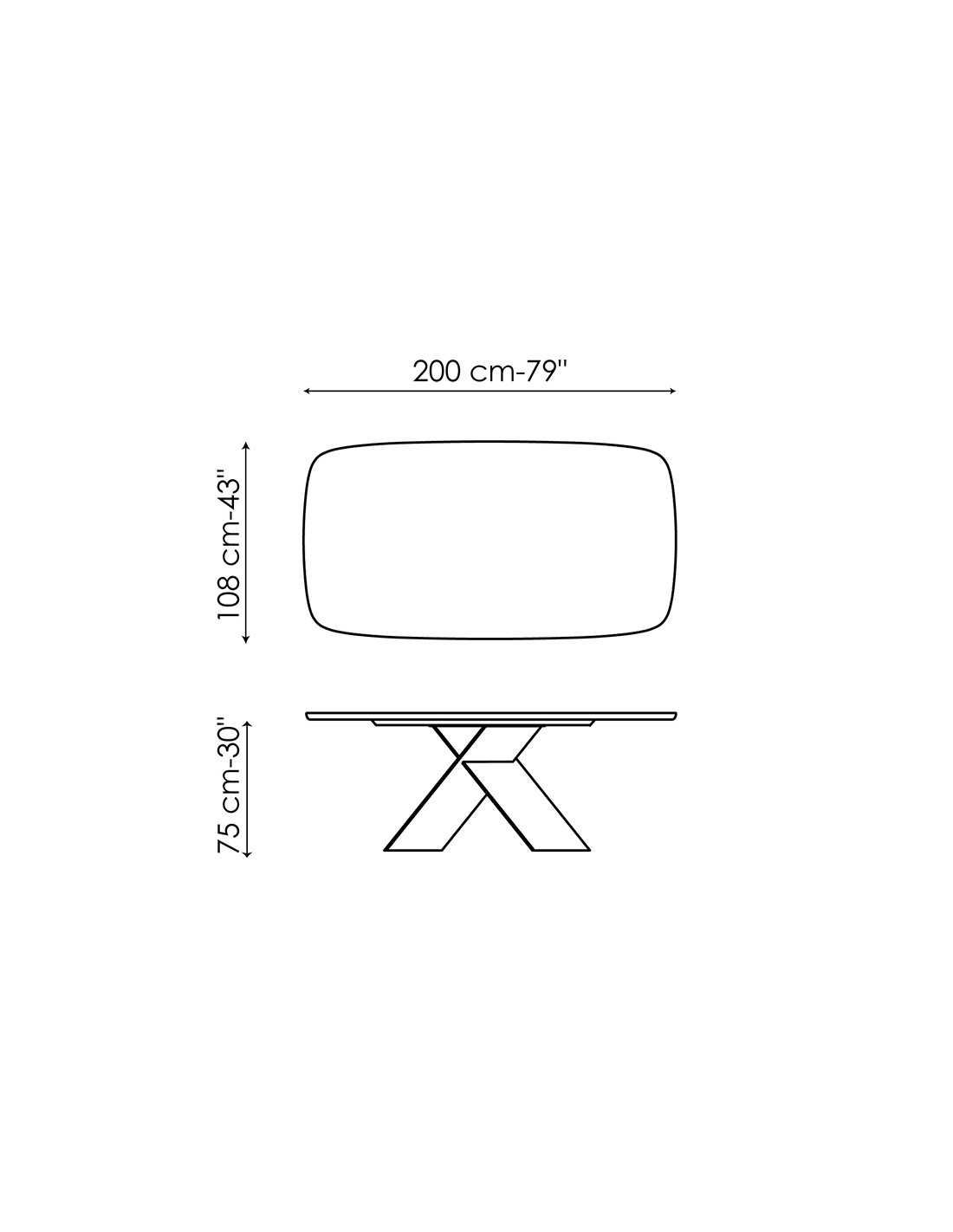 - H. 75 x L. 200 x P. 108