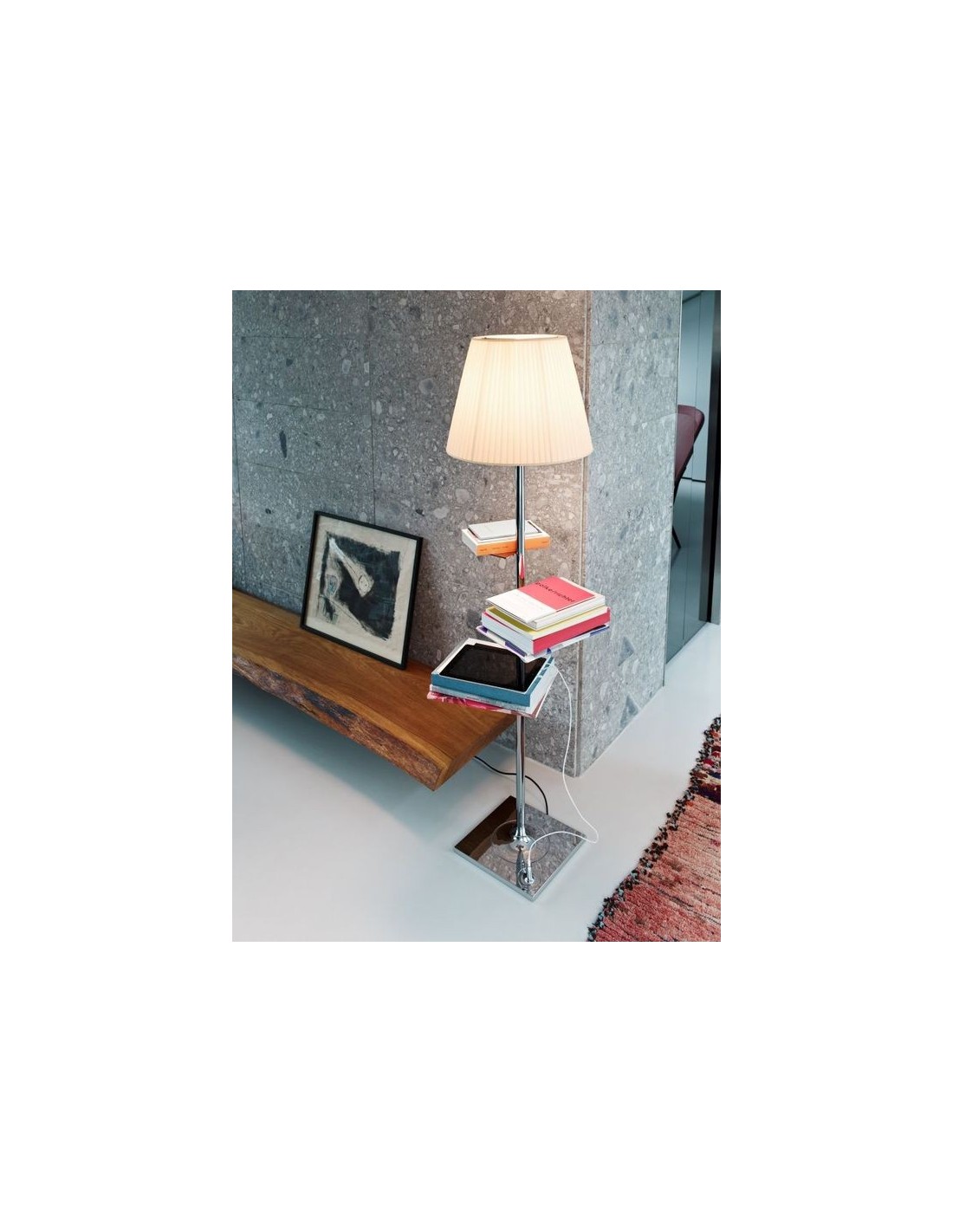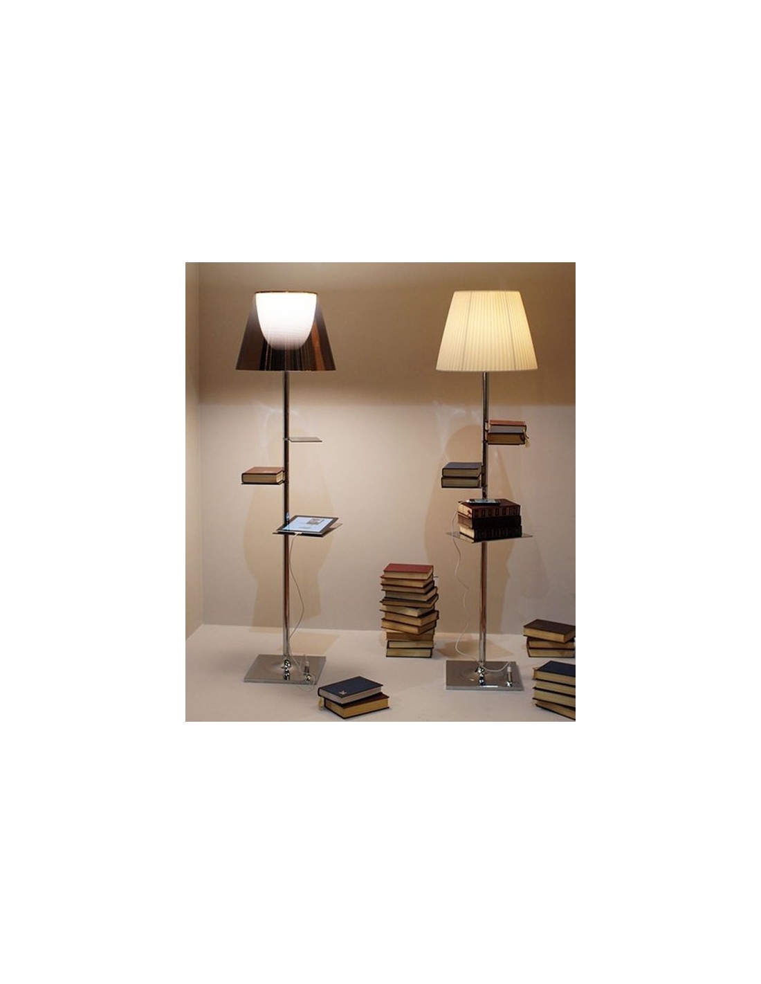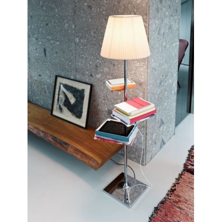 Un idea innovativa nata dalla mente di Philippe Starck con la collaborazione di Eugeni Quitllet presentata per EUROLUCI 2011.Bibliotheque Nationale non è la solita lampada ma svolge più funzione risultato un oggetto molto all'avanguardia e tecnologico nella sua forma classica.La struttura oltre a presentare una vasta gamma di colori tra cui : Trasparente, silver, bronzo, tessuto plissè e fumè, presenta delle comode mensole in acciaio dove poter poggiare i vostri oggetti o i libri per una lettura rilassante e nel frattempo potrete ricaricare anche i vostri dispositivi grazie a un entrata USB alla base della lampada.