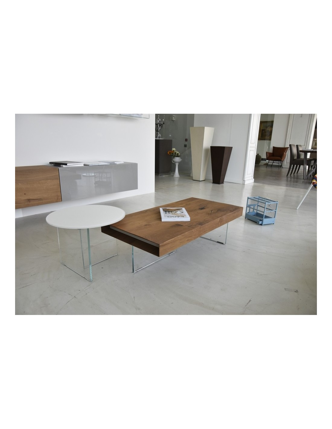 COFFEE TABLE AIR rotondo top vetro diam. 90 H. 37,8 - LAGO