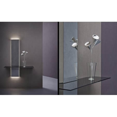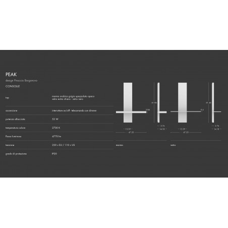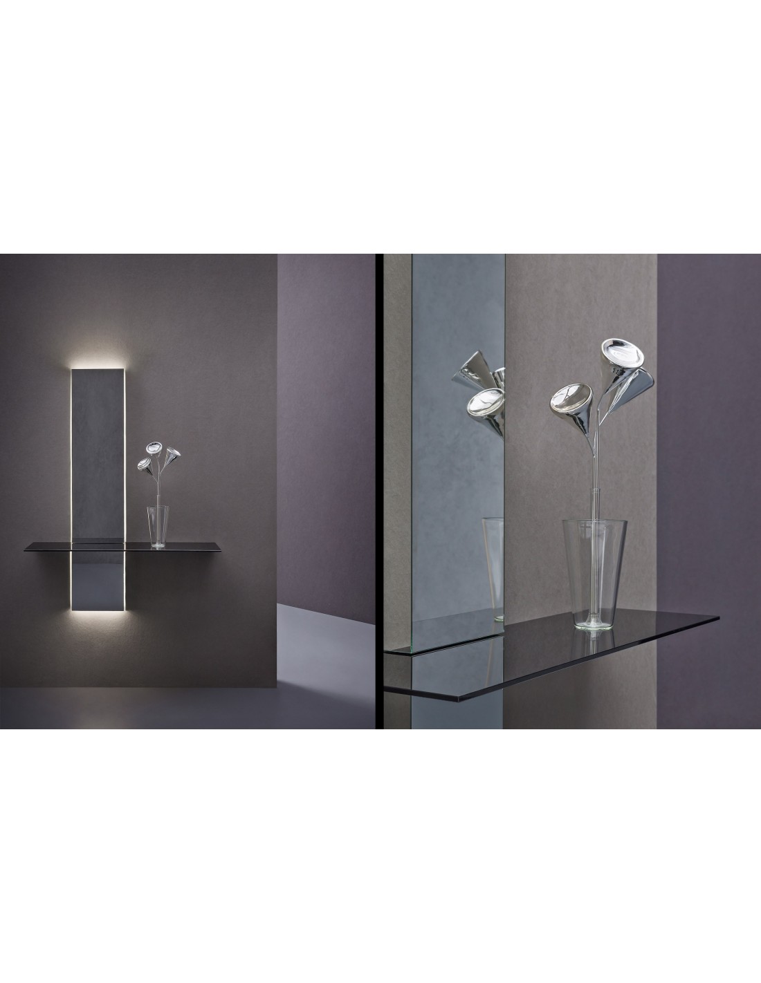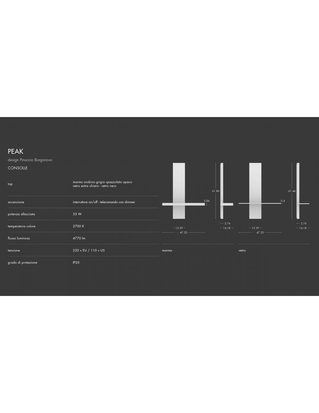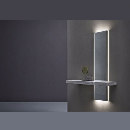 Peak di Natevo non è una semplice consolle ma un vero e proprio punto di incontro tra funzionalità e design. È costituita da uno specchio verticale imponente e moderno incastonato in un ripiano in marmo, tagliato in modo da lasciare a vista le affascinanti venature della pietra. I led, posizionati ai bordi della consolle, permettono di illuminare in modo discreto soffitto e pavimento. L’effetto finale è davvero spettacolare. La consolle ha un’anima contemporanea e di forte impatto, che trasformerà l’ingresso della tua casa in un angolo suggestivo e affascinante.