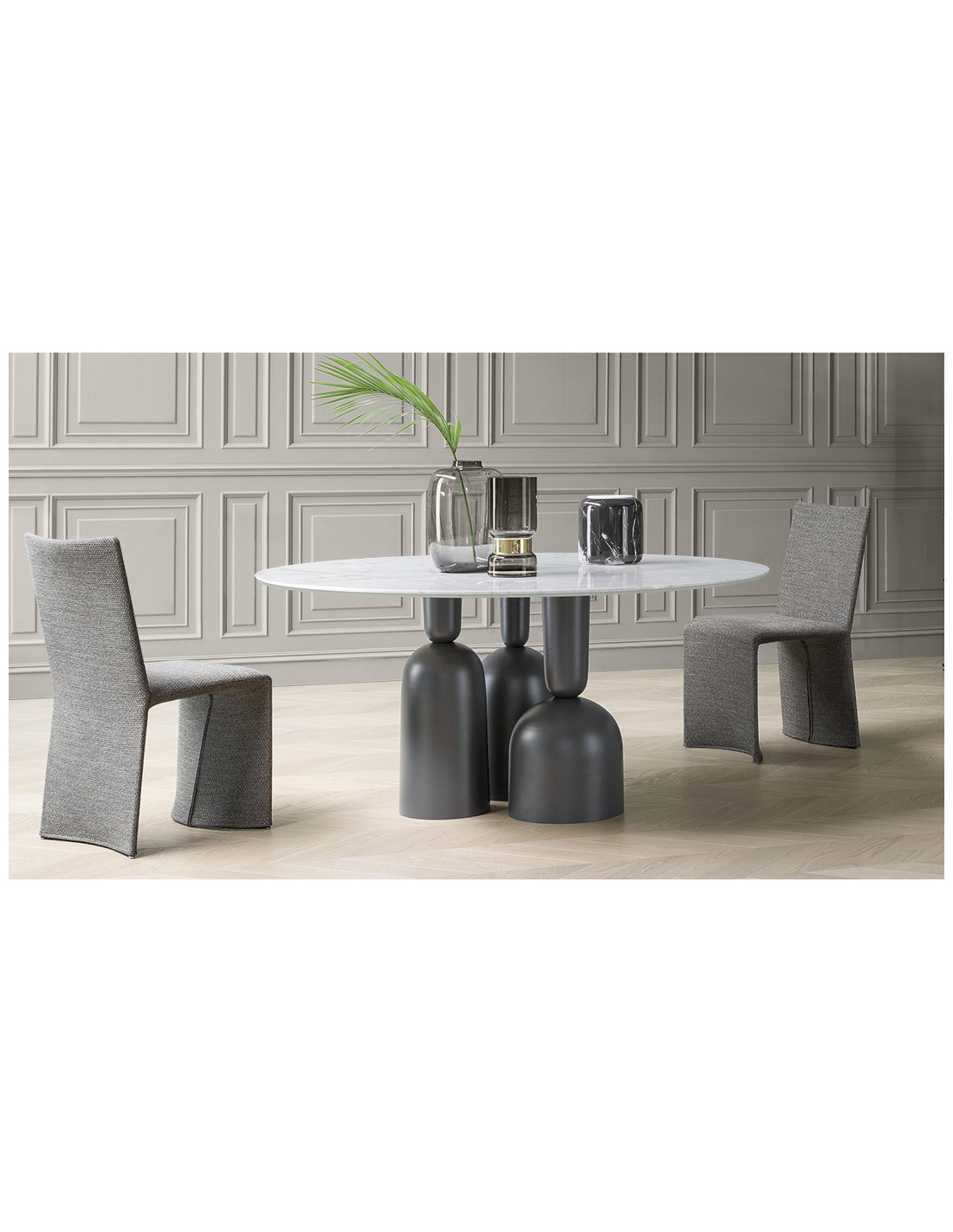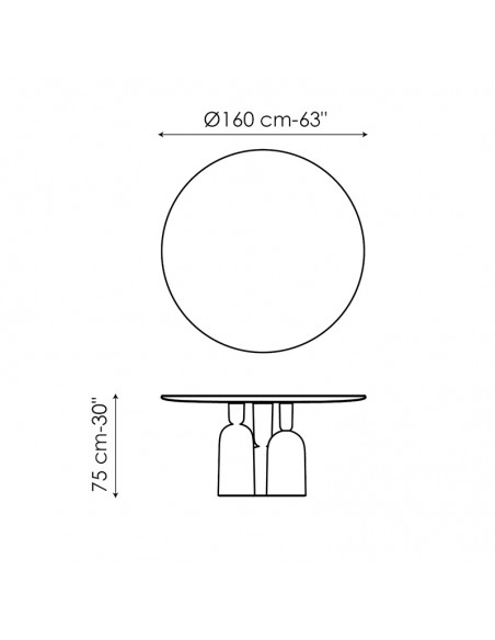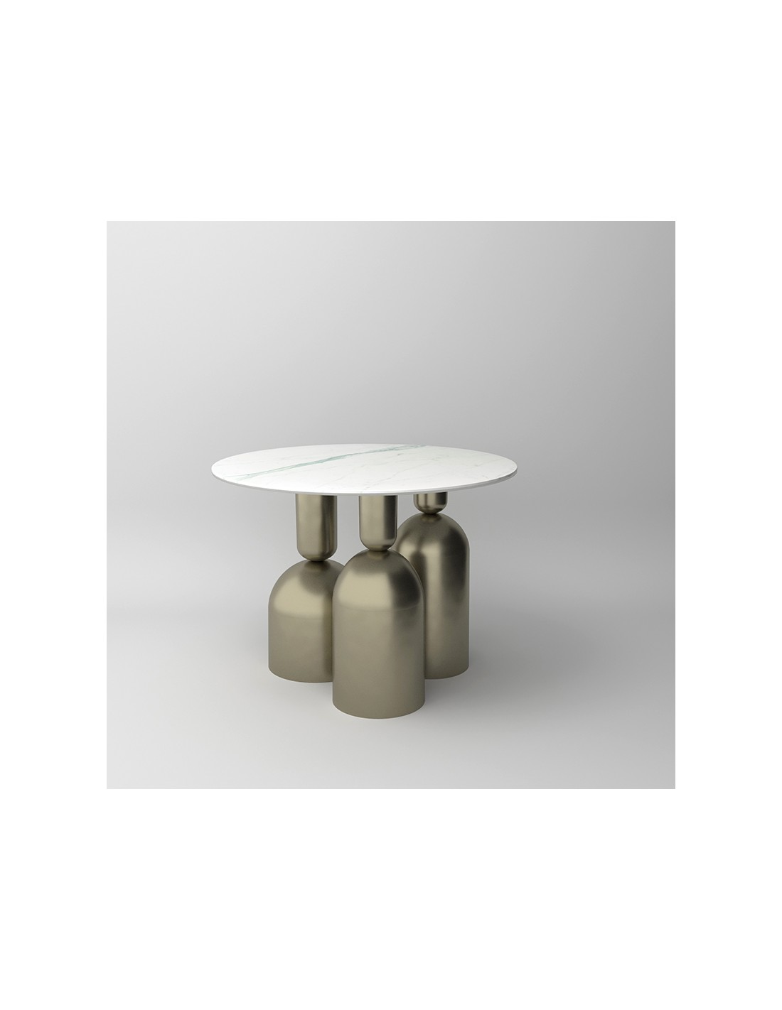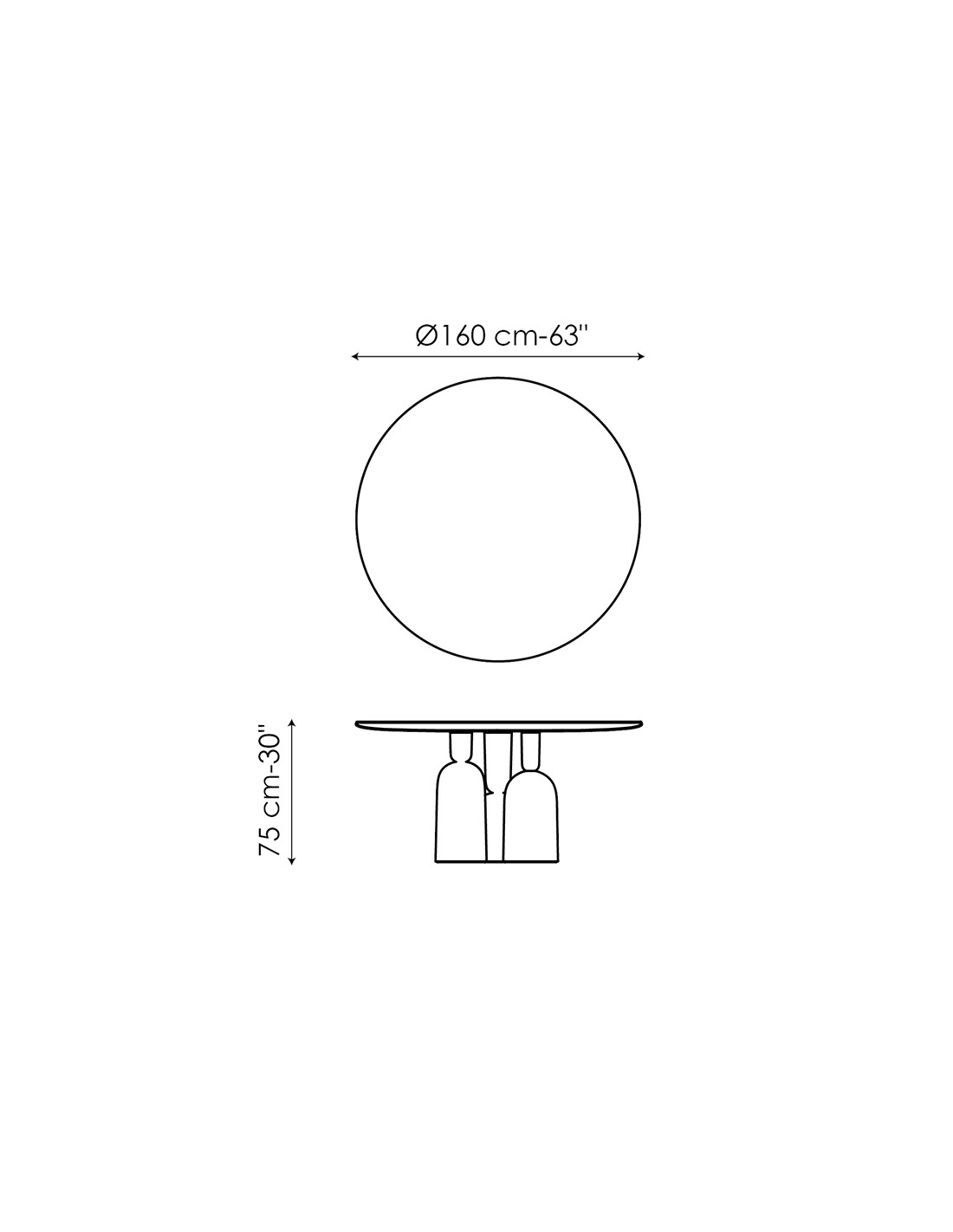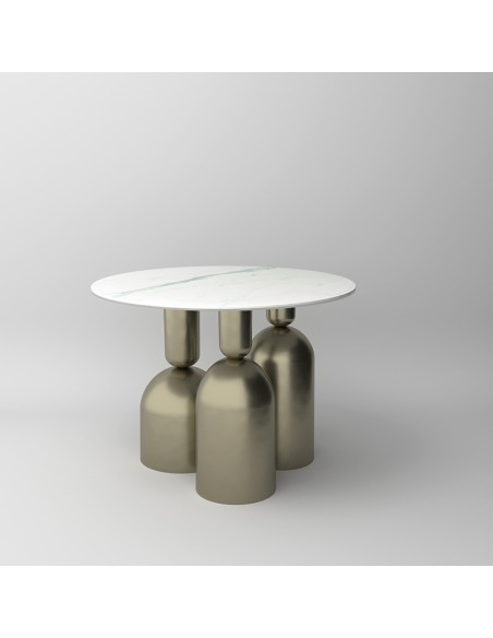 Se nella quotidianità le tavole si animano di oggetti che ne imbandiscono la superficie, in COP il piano d’appoggio è come uno specchio d’acqua, dove questi stessi oggetti vengono capovolti e ne costituiscono l’inedita base. Elementi stilizzati ispirati a bottiglie, calici preziosi e coppe di champagne, di forme diverse e immediatamente riconoscibili pur nella loro posizione inusuale. La base di Cop è in metallo verniciato a tinta unita oppure in una combinazione colore, o ancora nelle finiture brunito, ottone opaco o rame opaco. Il top è l’elemento neutro ma al tempo stesso la linea di demarcazione di un mondo che si riflette. È proposto in legno, o ceramica o marmo, e può essere a botte oppure rotondo.