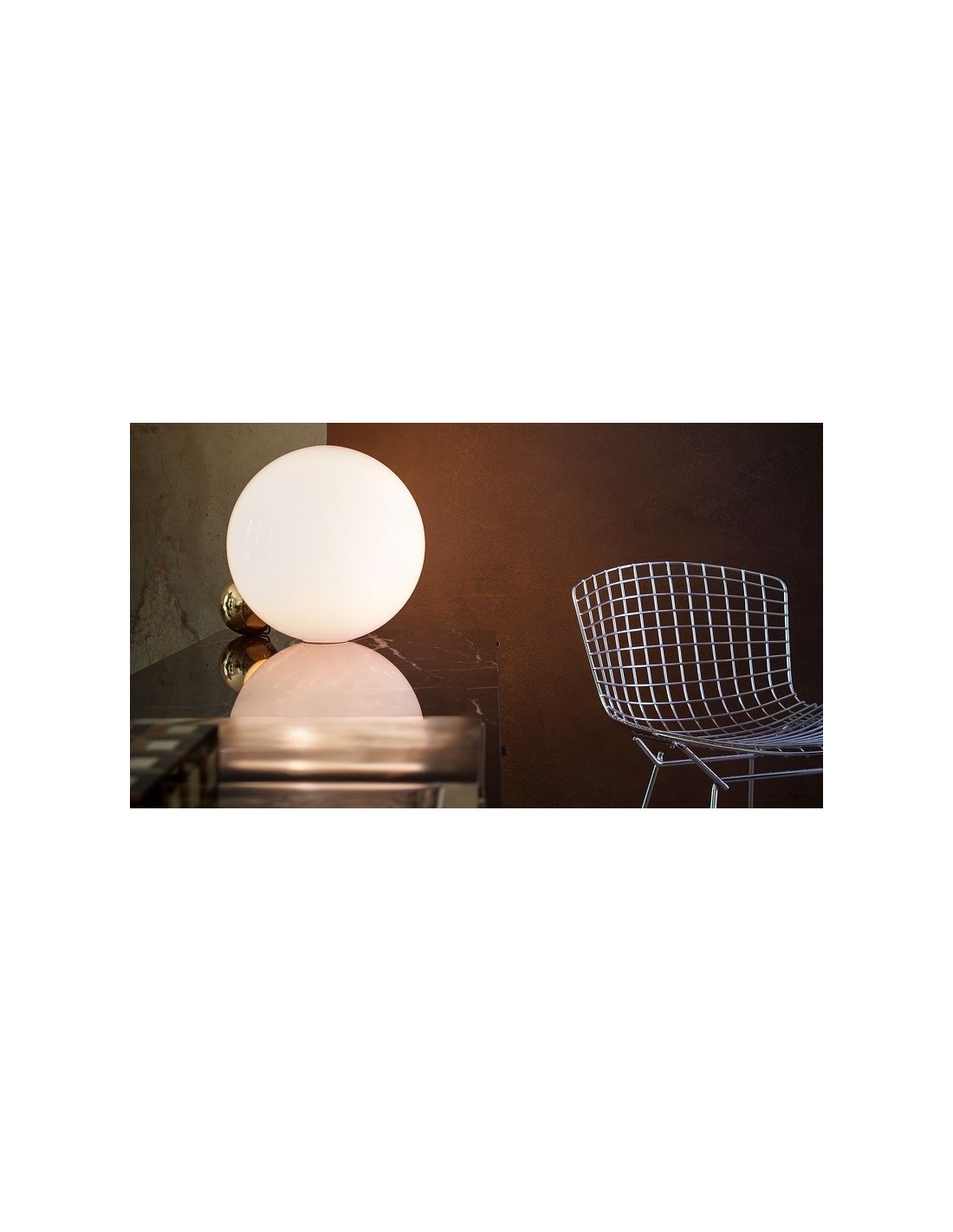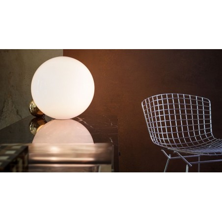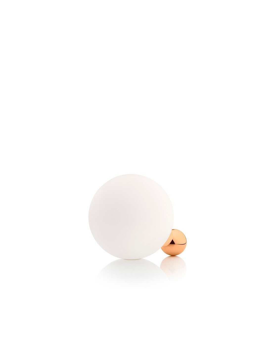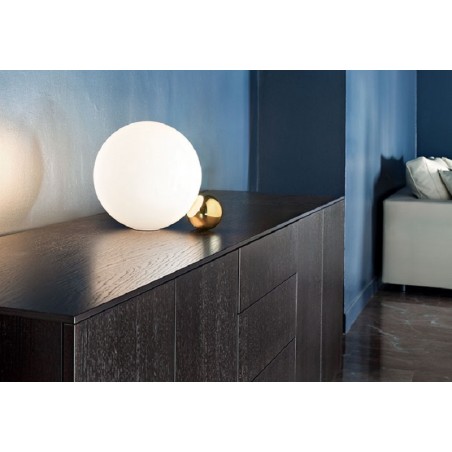 Copycat di Michael Anastassiades 2015 per flos è un apparecchio di illuminazione da tavolo composto da una sfera di alluminio lavorata dal pieno e successivamente dorata con bagno in oro 24 K.