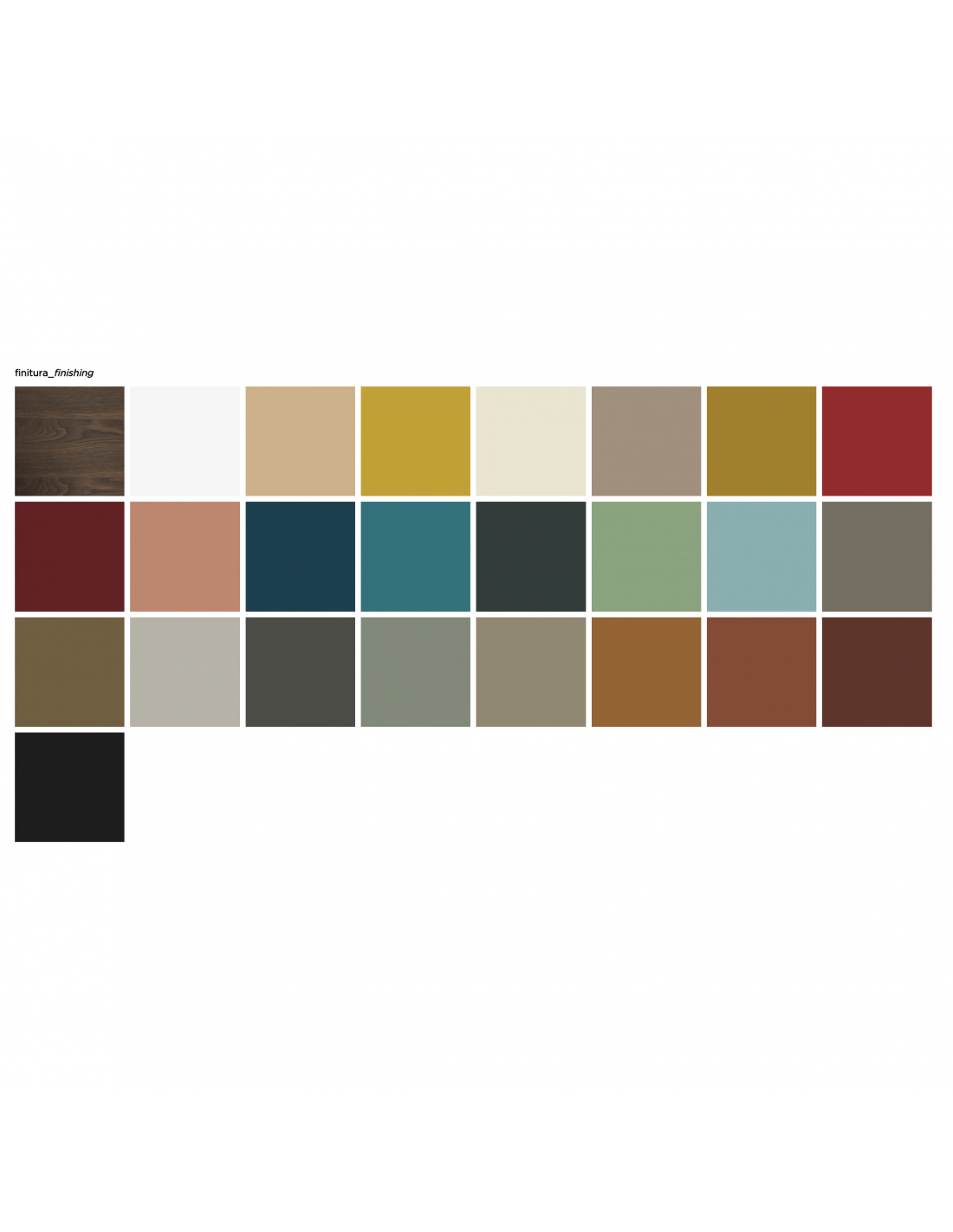- Finitura : Rovere termotrattato, legno laccato (colori RAL come da campionario)
