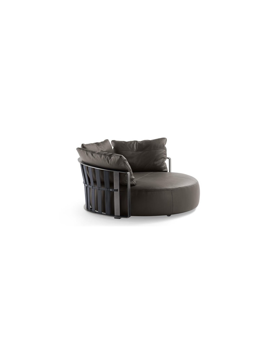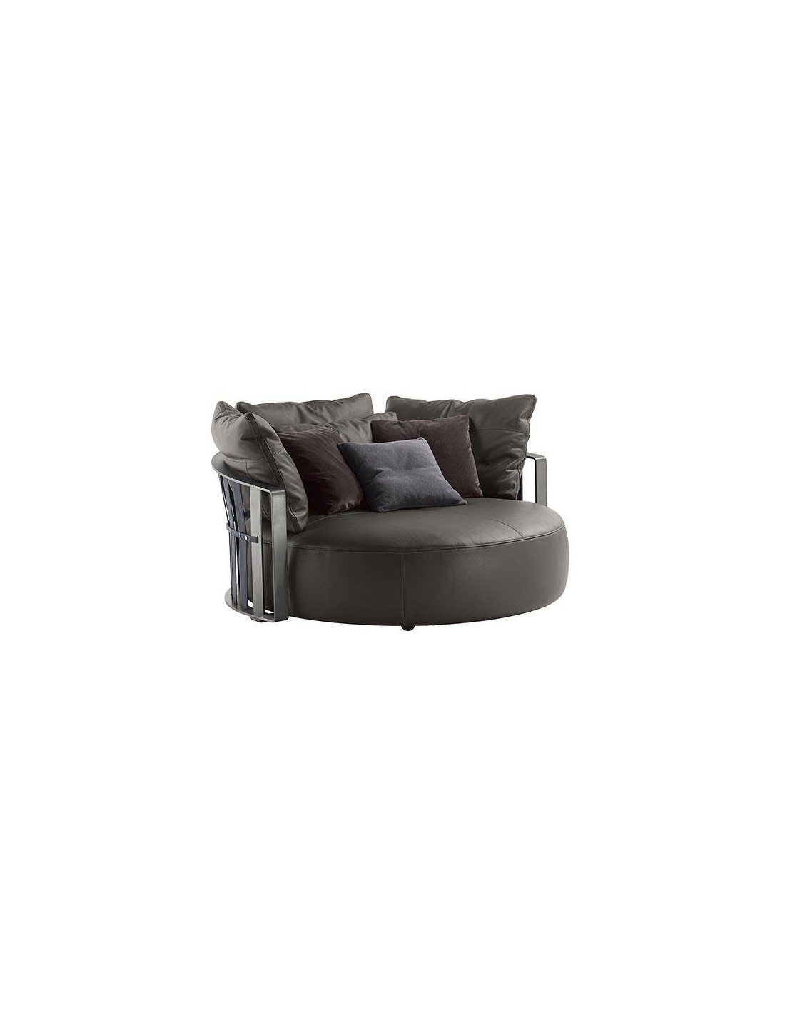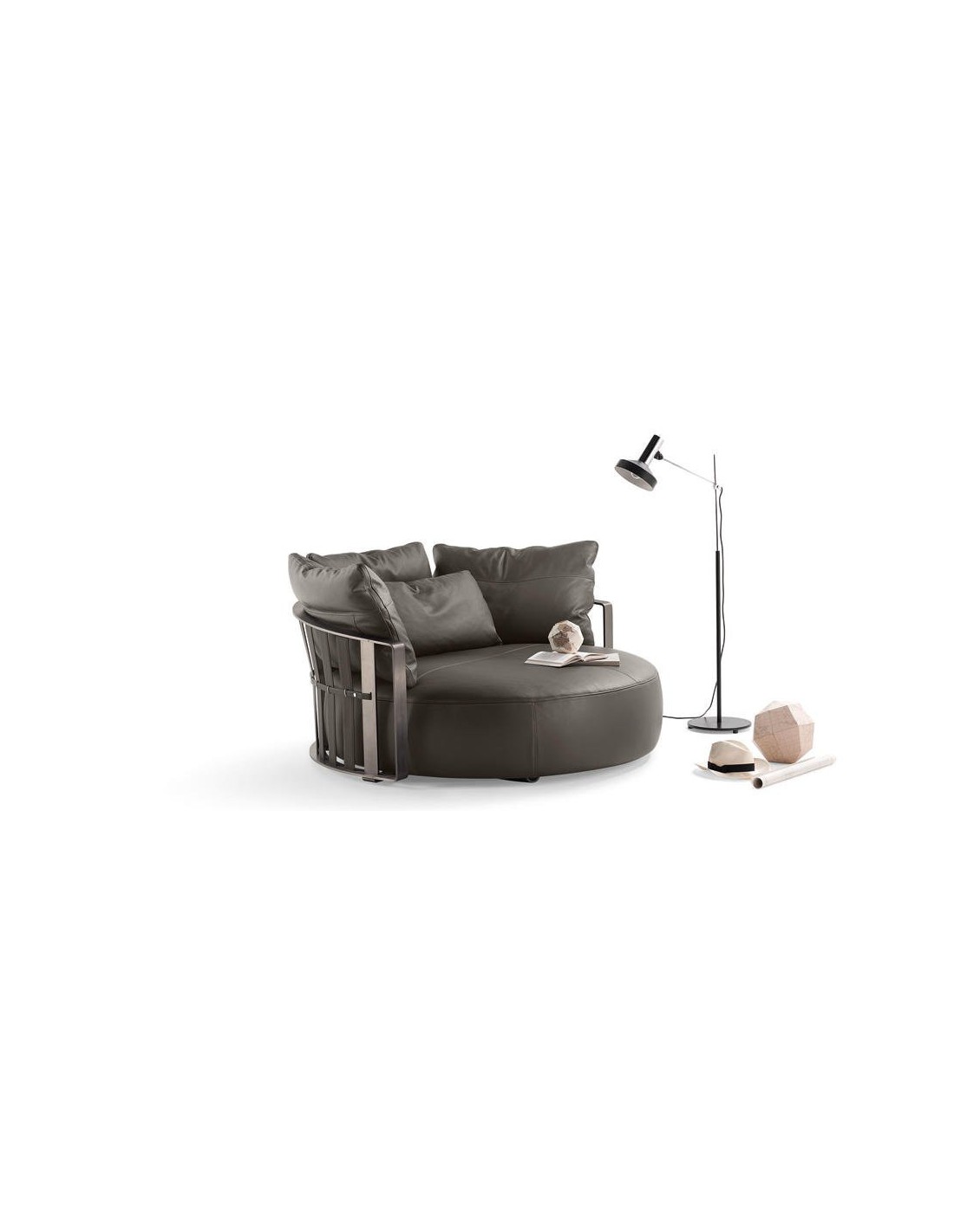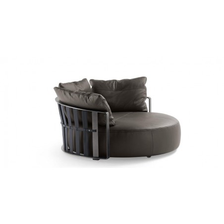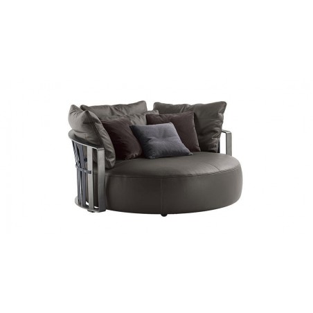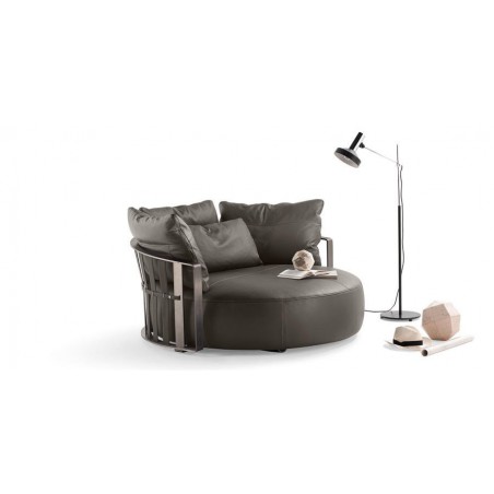 Con un'inaspettata forma circolare il divano Scarlett Poltrona Frau rompe gli schemi e conquista la scena.