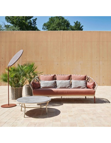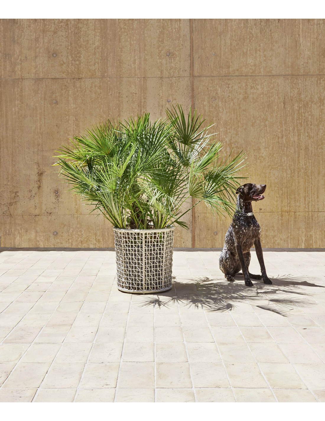 La Emma Fioriera reinventa la fioriera come elemento simbolico e decorativo. Il robusto telaio in alluminio verniciato a polveri è completato da un intreccio a mano in fibra sintetica (Var#Rope), che crea una texture raffinata e resistente alle condizioni climatiche esterne. Ideale per accogliere piante o fiori, può anche essere trasformata in contenitore decorativo o oggetto d’arredo a sé stante. Le finiture a scelta — sia per la struttura che per l’intreccio — permettono personalizzazioni cromatiche in sintonia con ogni contesto.