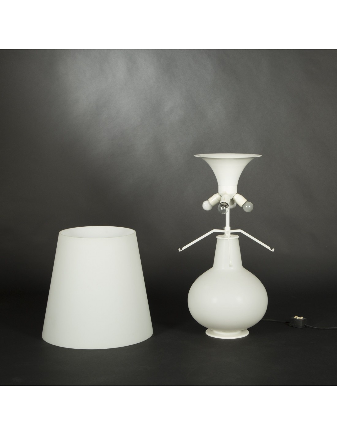 - Finitura paralume e base: Vetro soffiato bianco satinato