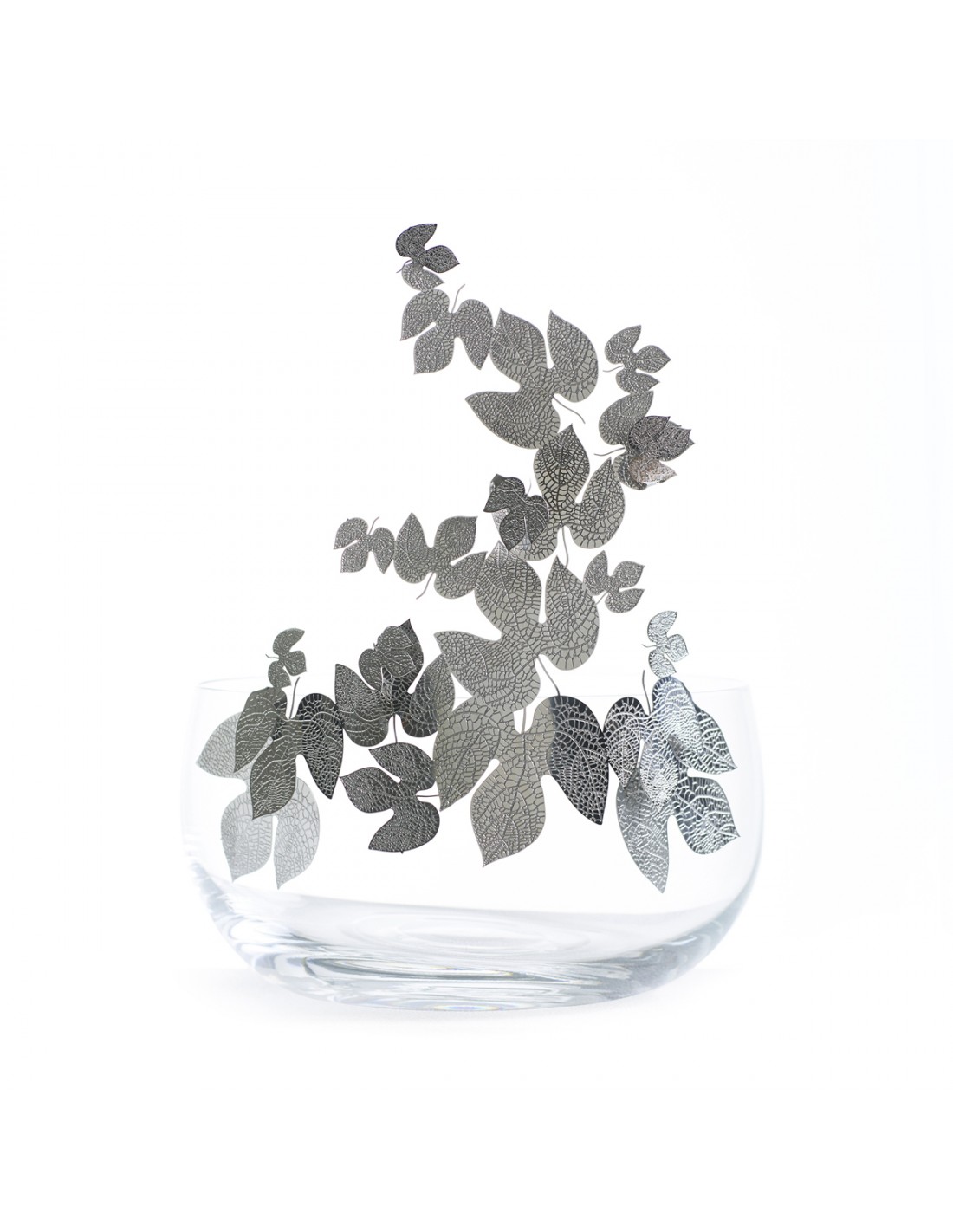 FRUTTETI è una collezione di ciotole, utilizzabili come centrotavola, fruttiera o contenitori. Realizzate in cristallo di Boemia con decori incisi in acciaio inox o ottone lucido disegnati da Gherardo Frassa e Gianluca Bianchi. Disponibile con tre decori e due finiture: "Libertà", serie di libellule; "Come l'autunno a New York", serie di foglie; "Madama.B", serie di farfalle.