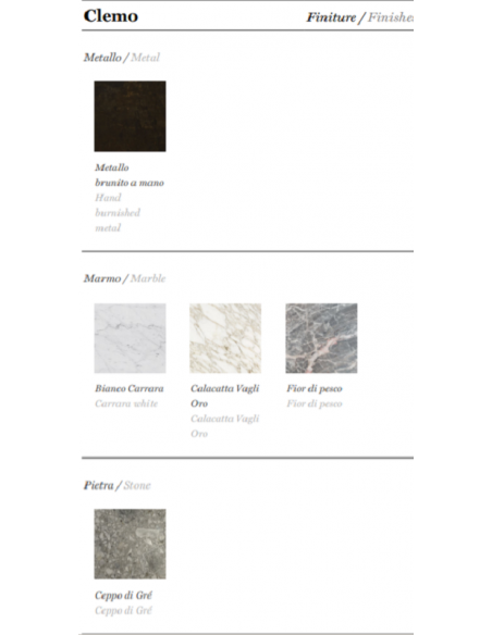 Tavolino in Ceppo di Grè spazzolato, con dettagli in metallo brunito a mano. Disponibile anche in marmo lucido naturale Calacatta Vagli Oro, Bianco Carrara oppure in marmo spazzolato Fior di Pesco.