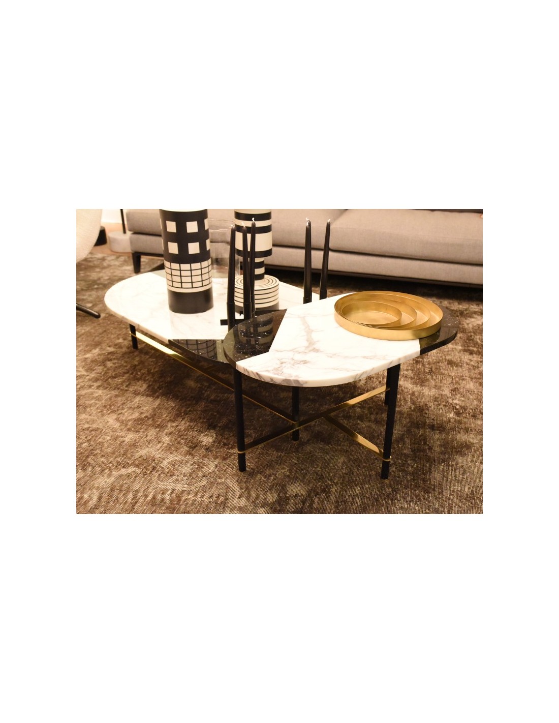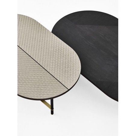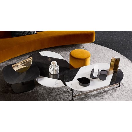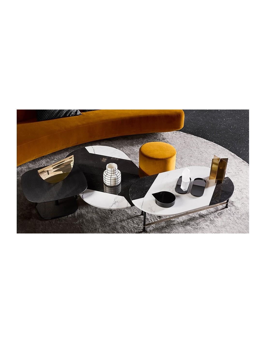 I tavolini COOKIES sono una novità del noto brand GALLOTTI&RADICE presentati in occasione del Salone del mobile di Milano 2018 e firmati dal designer PIETRO RUSSO. Sono disponibili nelle dimensioni small, medium, large e extralarge, con piano in Marmo bianco Statuario e nero Marquinia intarsiato, oppure con piano in TABA Frisè bianco e Tanganika nero. Struttura in alluminio spazzolato a mano e anodizzato nero e ottone lucido. Ideali in living come anche in bar e ristoranti, COOKIES si caratterizza per la doppia finitura del piano e la contemporanea eleganza. Per il modello small e medium inserti lati corti in nero, per il modello large inserti lati corti in bianco. N.B. Il piano è disponibile anche in marmo bianco Statuario e nero Marquinia intarsiato.