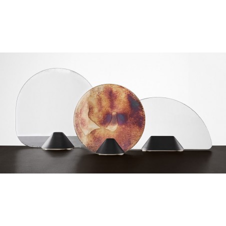 FLABELLO è un originale specchio da tavolo disegnato dai giovani designer FRANCESCA LANZAVECCHIA e HUNN WAI introdotto da GALLOTTI&RADICE al salone del mobile di Milano 2017. Realizzato in tre diverse dimensioni,si presenta con una base in frassino tinto nero poro aperto e ottone lucido, lo specchio invece è argentato ed anticato a mano, donando un tocco di classe a qualsiasi ambiente e grazie al suo aspetto discreto , FLABELLO riesce facilmente ad attirare l'attenzione dei tuoi ospiti.