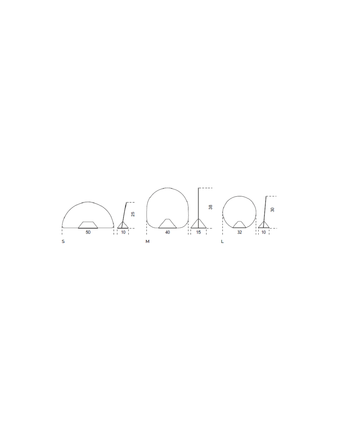 - Dimensioni: L. 32/40/50 x P. 10/15 x H. 25/30/38