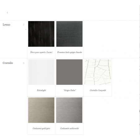 - Struttura: frassino tinto nero poro aperto oppure tinto grigio smoke