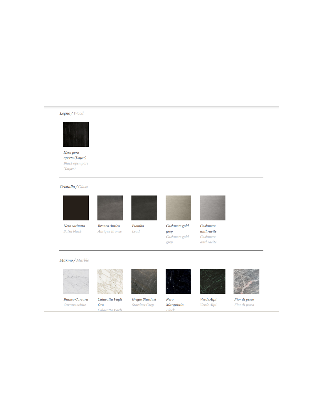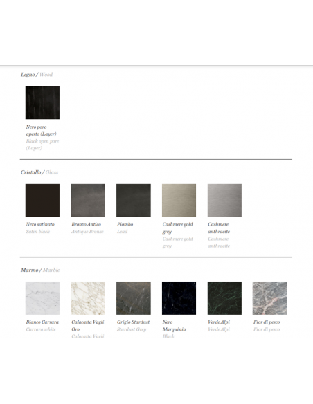 - Finitura base: legno rivestita in cristallo 6 mm temperato