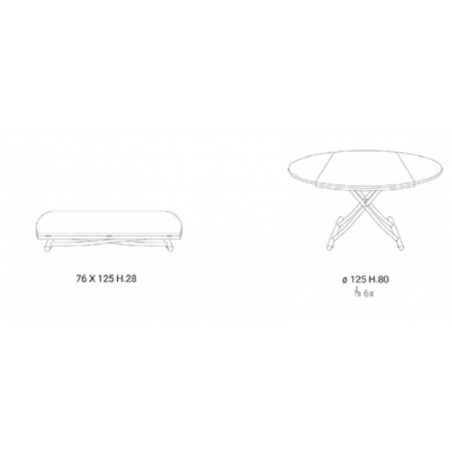- Dimensioni: L. 125 x P. 76 → Ø 125 x H. 28 ↑ 80 cm