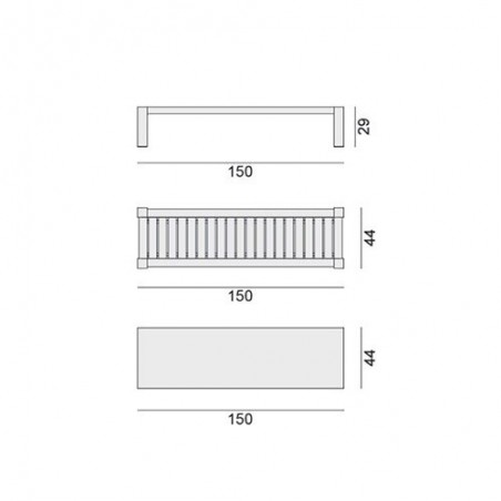 - Dimensioni : H. 29 X L. 150 x P. 44