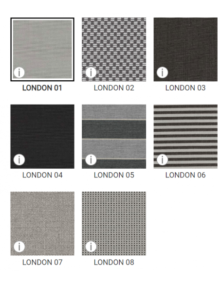 - N.B possibilità di aggiungere un rullo con imbottitura in fibra sintetica e fodera idrorepellente in tessuto poliestere sfoderabile (contattarci per preventivo)