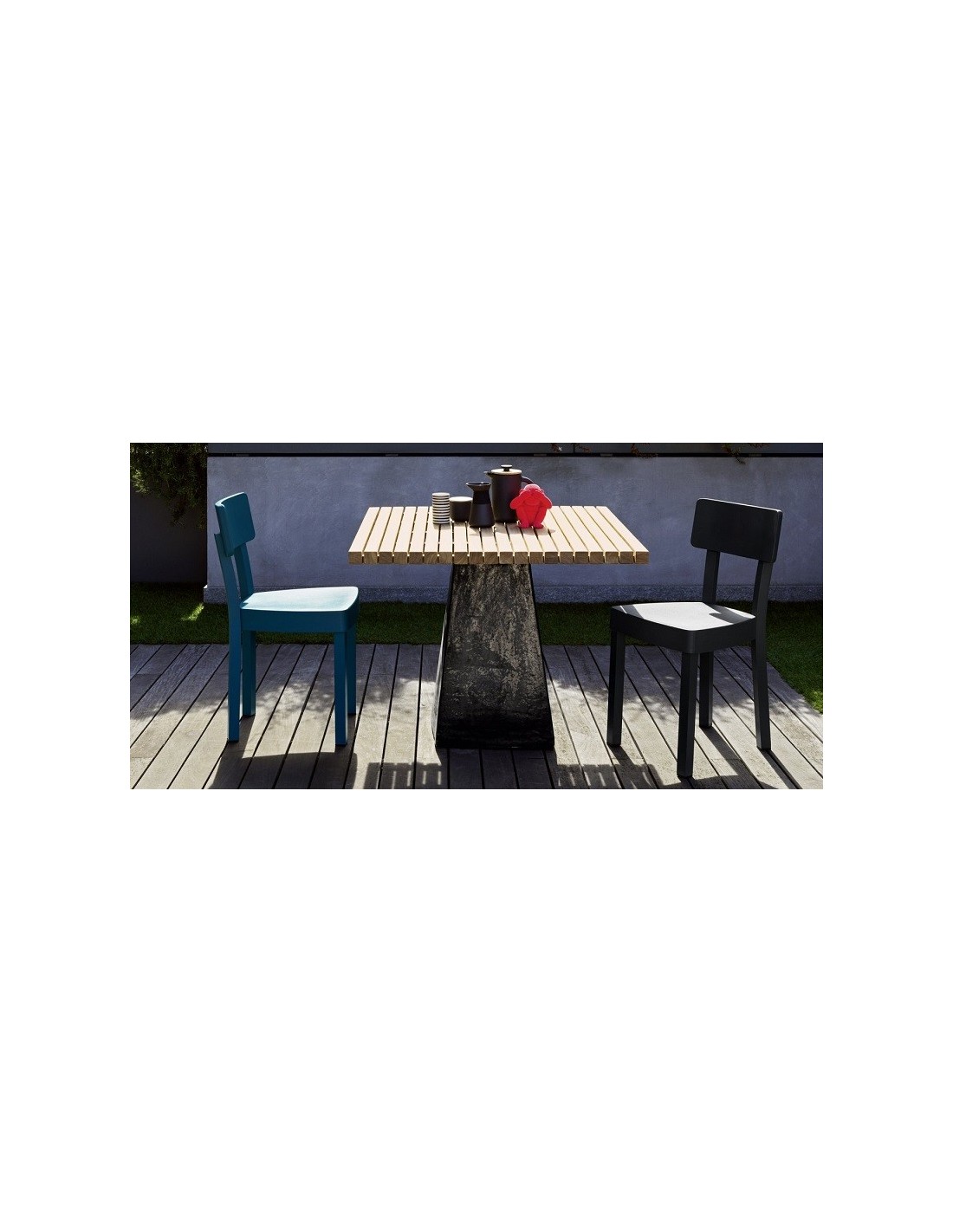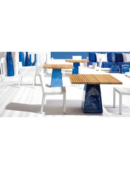 Tavolo disponibile con due diverse dimensioni del piano a doghe in teak .