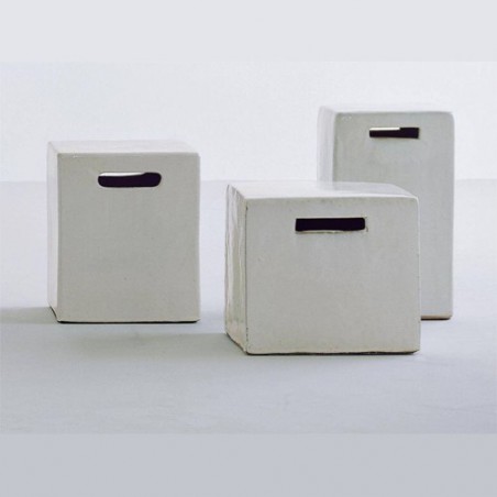 - Tavolino / pouf in ceramica colore : bianco - blu - grigio antracite