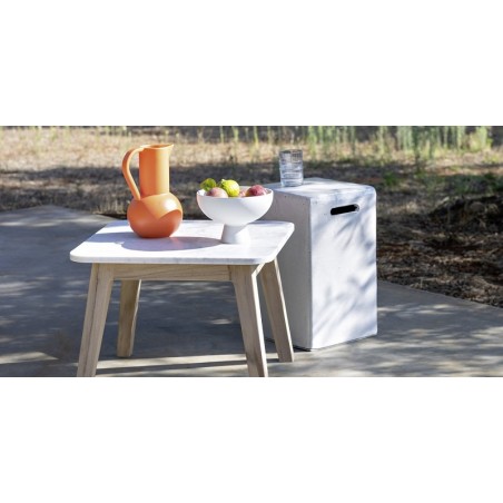 Il tavolino / pouf Inout 43 del brand Gervasoni appartiene alla collezione Inout della designer Paola Navone