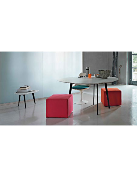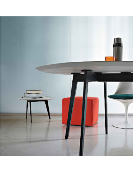 Il tavolo Jump è un elemento d'arredo polifunzionale, che offre molteplici soluzioni estetiche. Officinadesign Lema propone un tavolo dal segno leggero, che reinterpreta il passato in chiave contemporanea, firmato Roberto Lazzeroni. Il piano laccato presenta un profilo morbido e sinuoso. Le gambe metalliche sono sottili e rastremate verso il basso. Una soluzione elegante ed essenziale, che ben si adatta sia ambienti domestici, sia agli spazi di lavoro.
