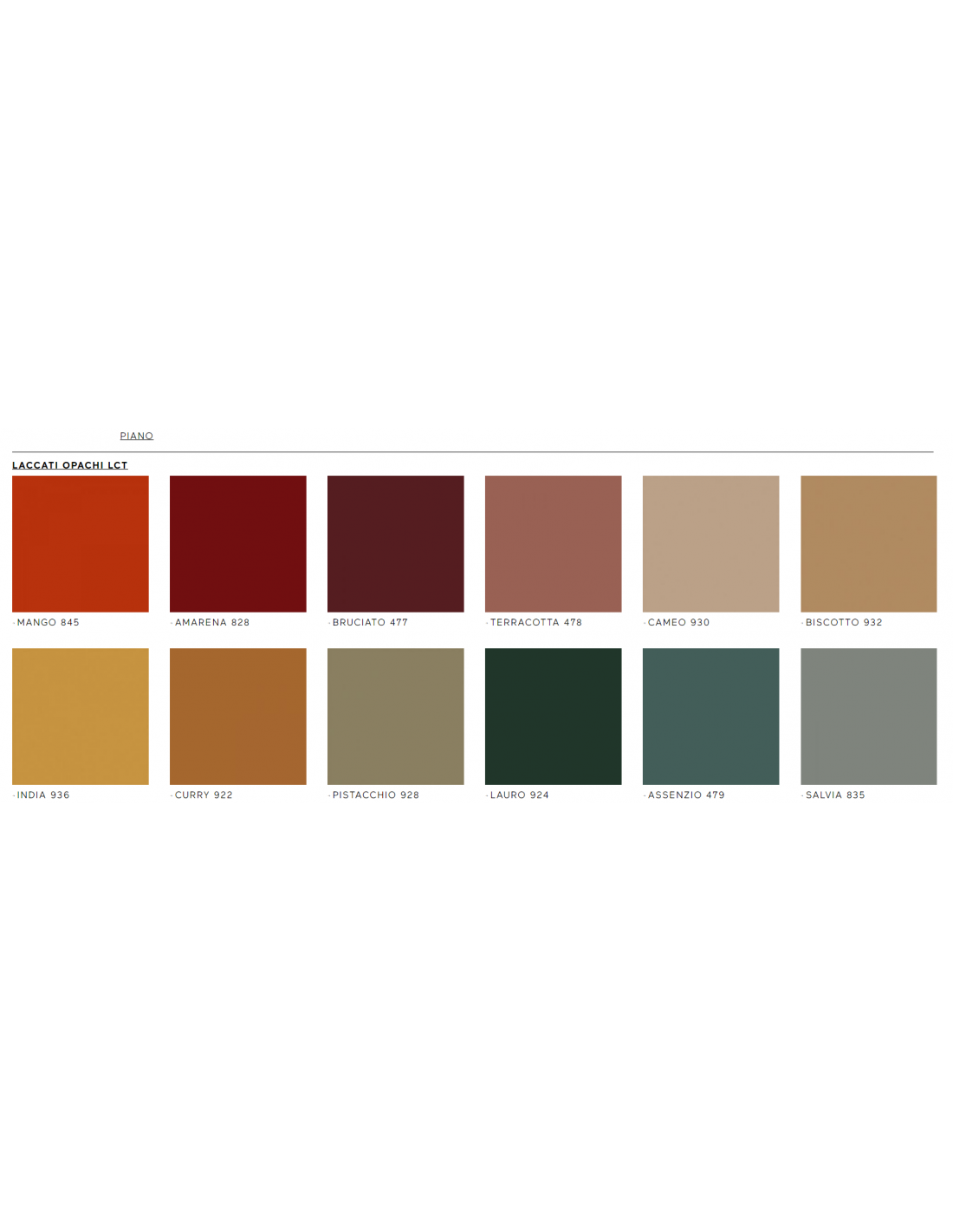 - Finitura piano: laccati opachi Lema
