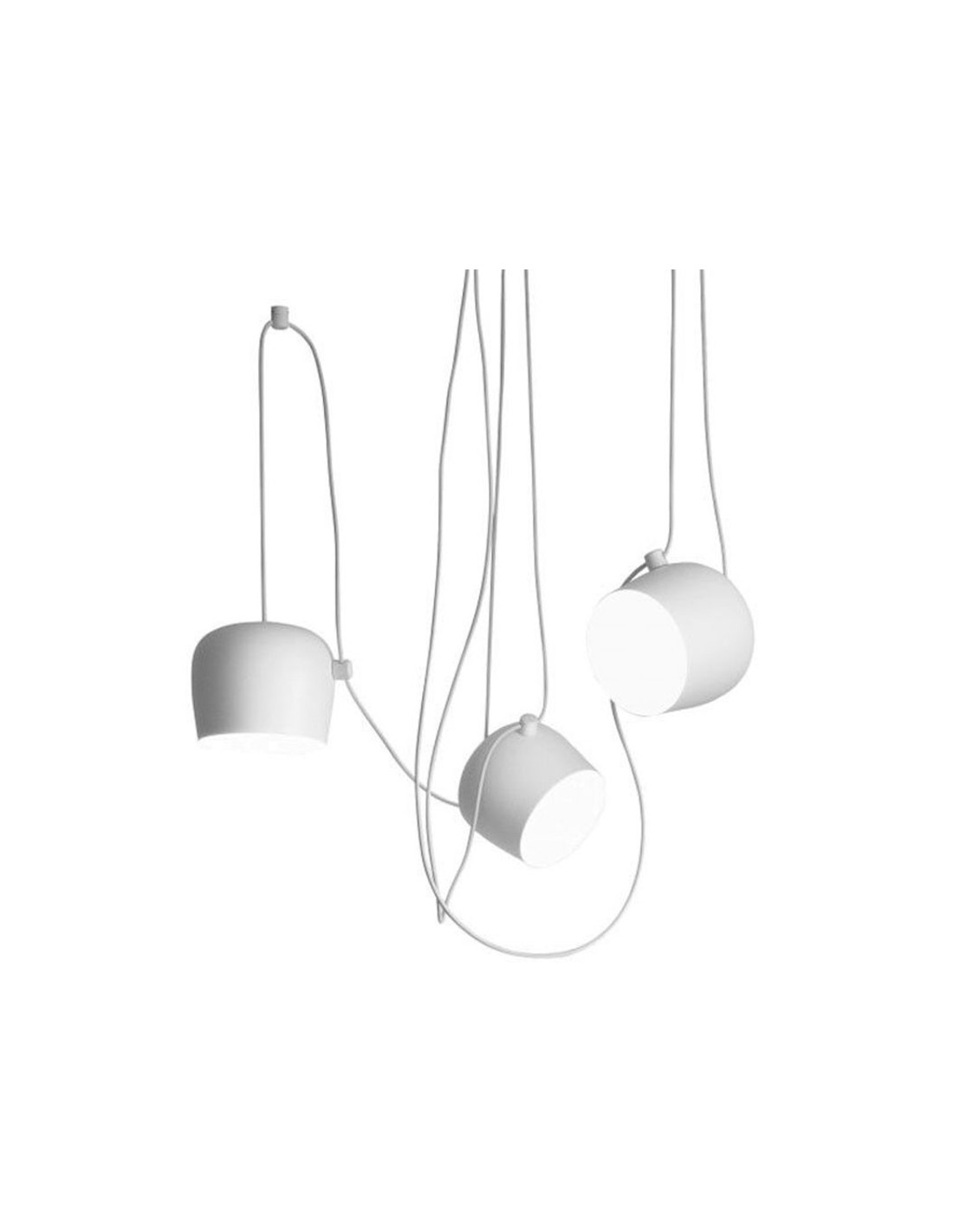 Aim small nasce dall'idea di illuminazione dello studio R. & E. Bouroullec 2014 per Flos.Una lampada a sospensione essenziale ma che si presta a qualsiasi tu a esigenza potendo variare sia di intensità che con le altezze e profondità.Possiamo trovarla nei tre colori bianco, nero e marrone.La struttura è in alluminio e il diffusore in policarbonato ottico.