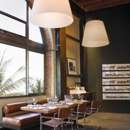 La lampada Amax Fontana Arte richiama il classico paralume con un design essenziale e lineare.