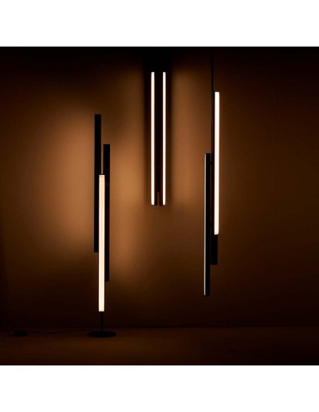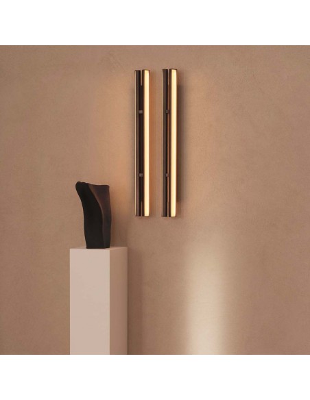 Il designer madrileno David Lopez Quincoces ha ideato CUT BACK, una raffinata collezione di lampade moderne caratterizzate da un design distintivo. La linea si compone di elementi luminosi disallineati realizzati in estruso di alluminio con una sofisticata finitura in bronzo satinato, completati da un pannello frontale in vetro millerighe. Ogni elemento integra una pellicola in bronzo che amplifica il riflesso della luce, creando un’atmosfera luminosa e rilassante. Cut Back è disponibile in diverse configurazioni: a parete , a sospensione e da terra, offrendo versatilità e adattabilità a vari contesti di arredamento. L'intensità luminosa degli elementi può essere comodamente regolata grazie al dimmer touch metallico incluso, che assicura un controllo intuitivo e preciso dell'illuminazione.