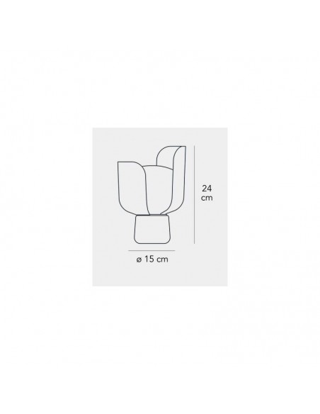 Lampada da tavolo a luce diffusa regolabile tramite la rotazione dei petali sulla base. Montatura in alluminio verniciato, petali in policarbonato. Diffusore in polietilene opalino bianco latte. Cavo di alimentazione, interruttore e spina trasparenti. Spina europea due poli. Fonte luminosa non inclusa.