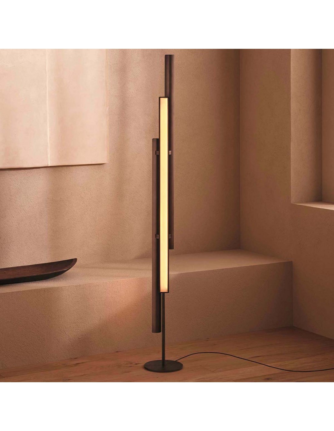 Il designer madrileno David Lopez Quincoces ha ideato CUT BACK, una raffinata collezione di lampade moderne caratterizzate da un design distintivo. La linea si compone di elementi luminosi disallineati realizzati in estruso di alluminio con una sofisticata finitura in bronzo satinato, completati da un pannello frontale in vetro millerighe. Ogni elemento integra una pellicola in bronzo che amplifica il riflesso della luce, creando un’atmosfera luminosa e rilassante. Cut Back è disponibile in diverse configurazioni: da terra, a sospensione e a parete, offrendo versatilità e adattabilità a vari contesti di arredamento. L'intensità luminosa di ciascun elemento può essere comodamente regolata grazie al dimmer touch metallico incluso, che assicura un controllo intuitivo e preciso dell'illuminazione.