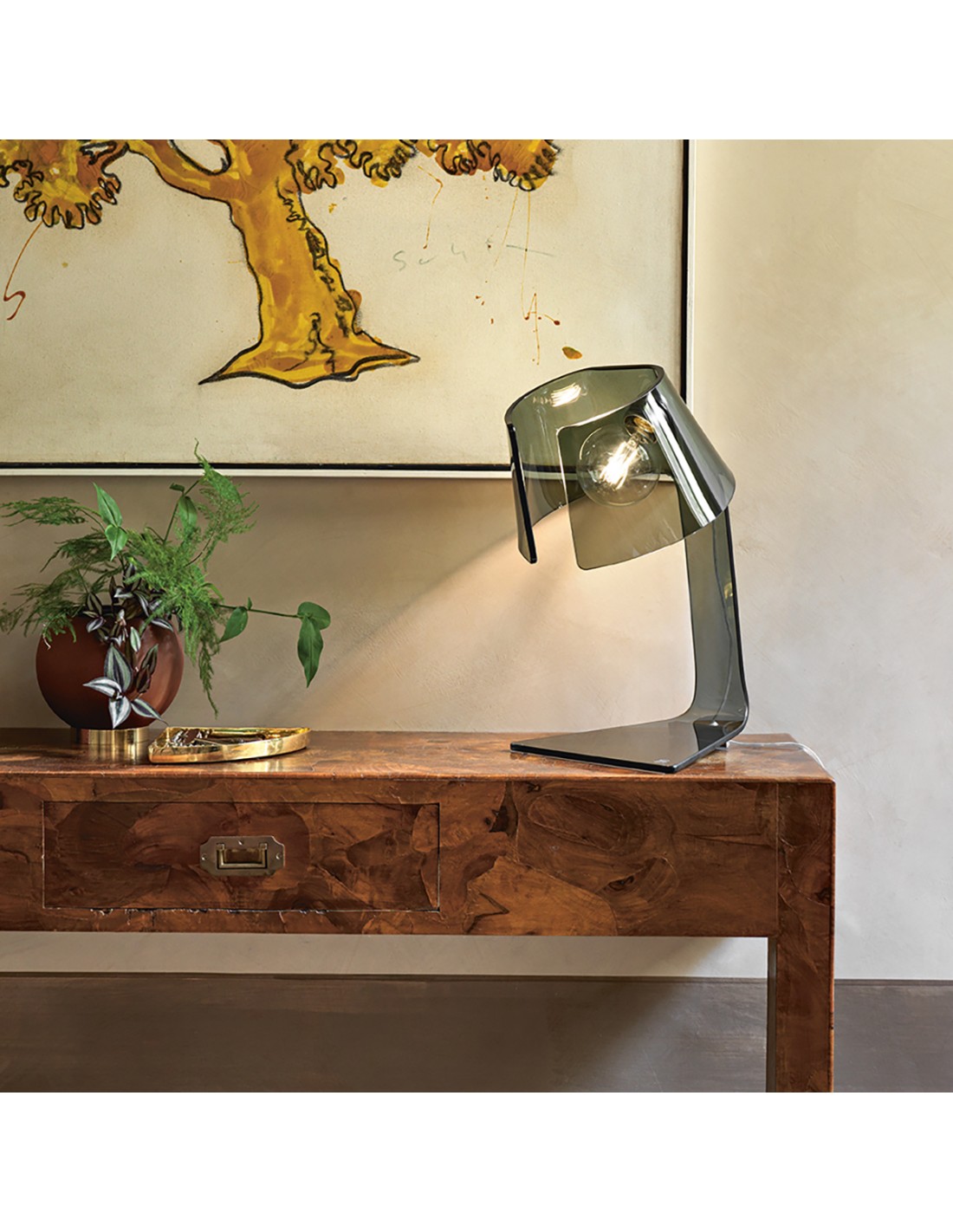 L'astra è una lampada da tavolo dal design versatile, curato nei minimi dettagli da Lo Bianco e Mansueto. La sua estetica, essenziale ma al contempo originale, ne permette l’integrazione armoniosa in una vasta gamma di ambienti. Realizzata in vetro trasparente curvato da 8 mm, è disponibile nelle varianti di vetro standard, bronzo o fumé. Completa di lampadina e portalampada in alluminio lucido, rappresenta una scelta raffinata e funzionale per ogni spazio.