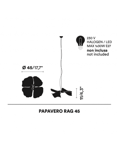 Papavero Raggiante nasce dal genio di Gherardo Frassa come si evince dal soggetto dell'opera. L'oggetto forma un fiore o meglio un papavero con petali di metallo curvati a mano che danno all'oggetto una sensualità e un movimento particolare. Troviamo questo splendido oggetto in due dimensioni Ø 45 e Ø 90. L'illuminazione si adatta perfettamente a qualsiasi ambiente di casa tua.