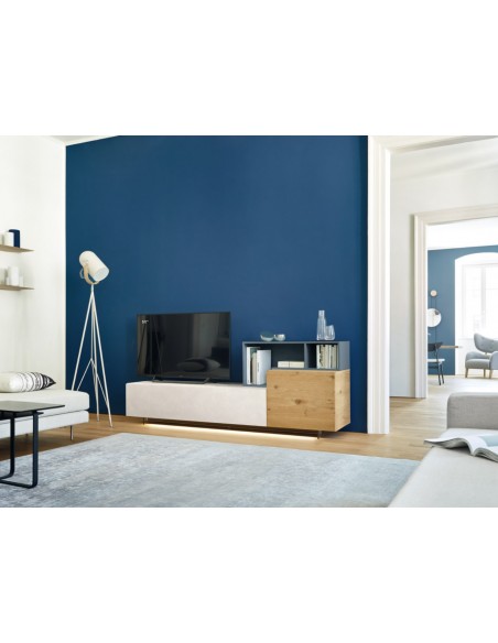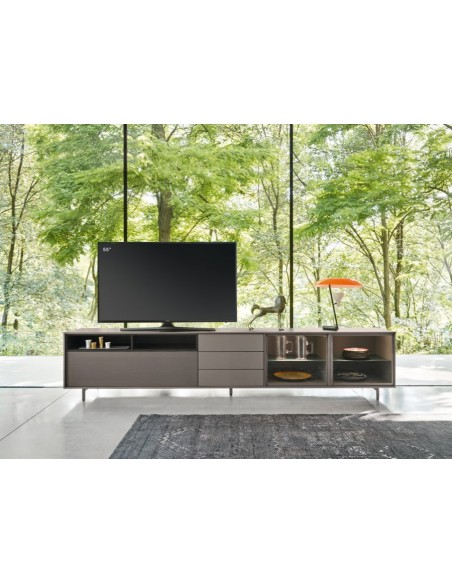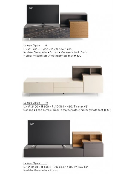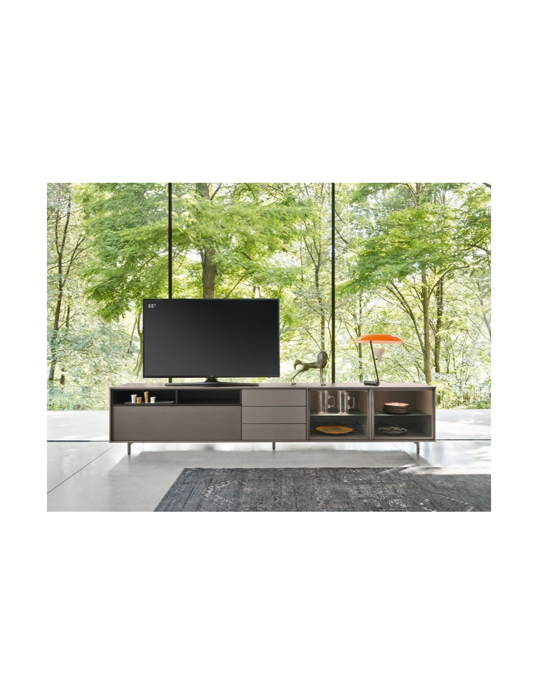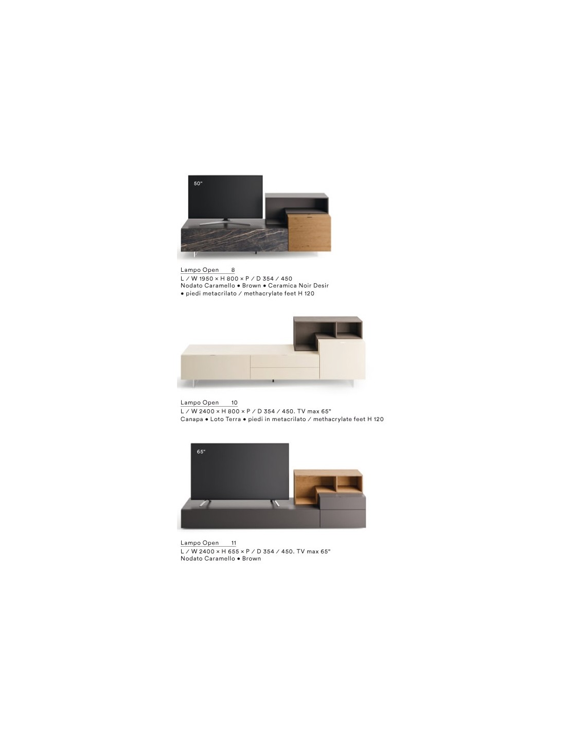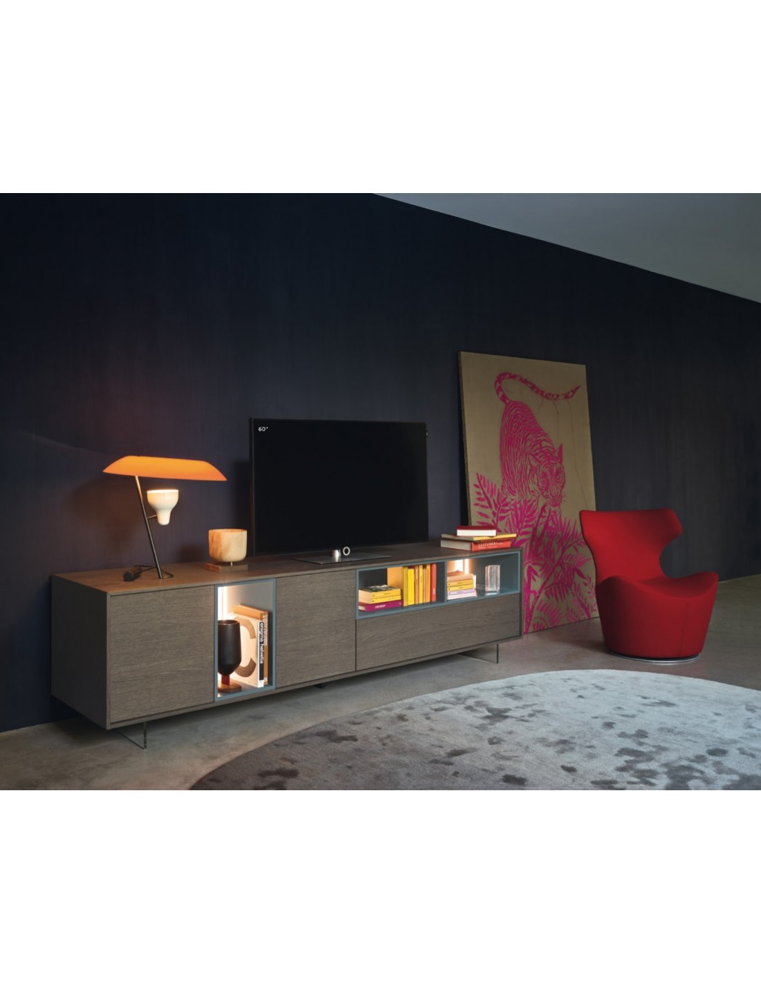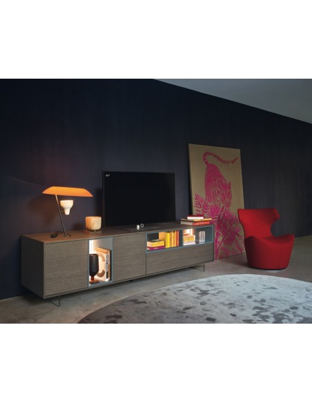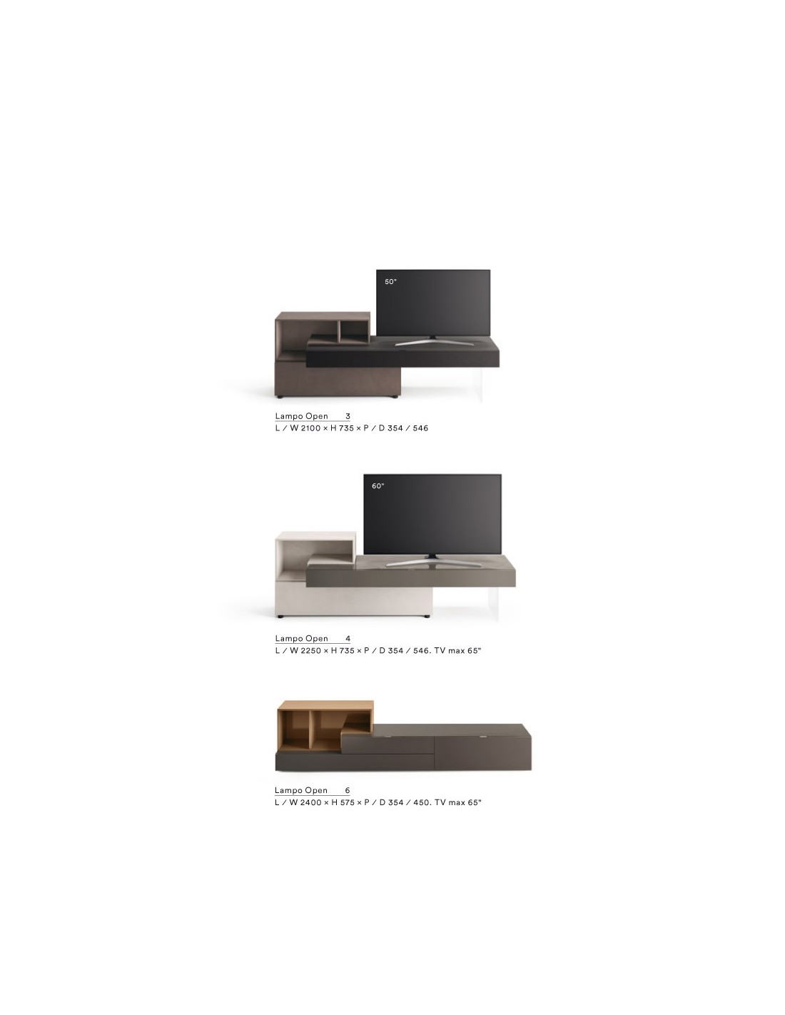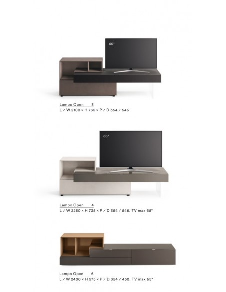 Il Mobile TV “Lampo Open” di Sangiacomo è un elemento progettato per integrare con stile la televisione nell’arredo living. È parte del sistema TV Units, che offre diverse varianti con supporti orientabili (Vesa, Vision o Roto), spazi per gestione nascosta dei cavi e opzioni estetiche personalizzate, per adattarsi ad ambienti contemporanei e curati.