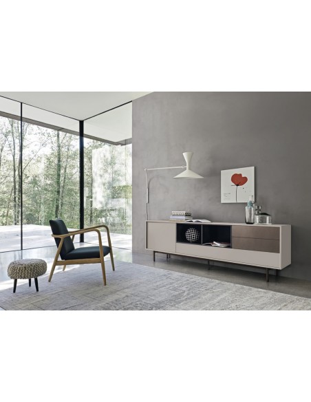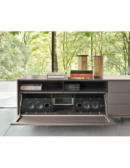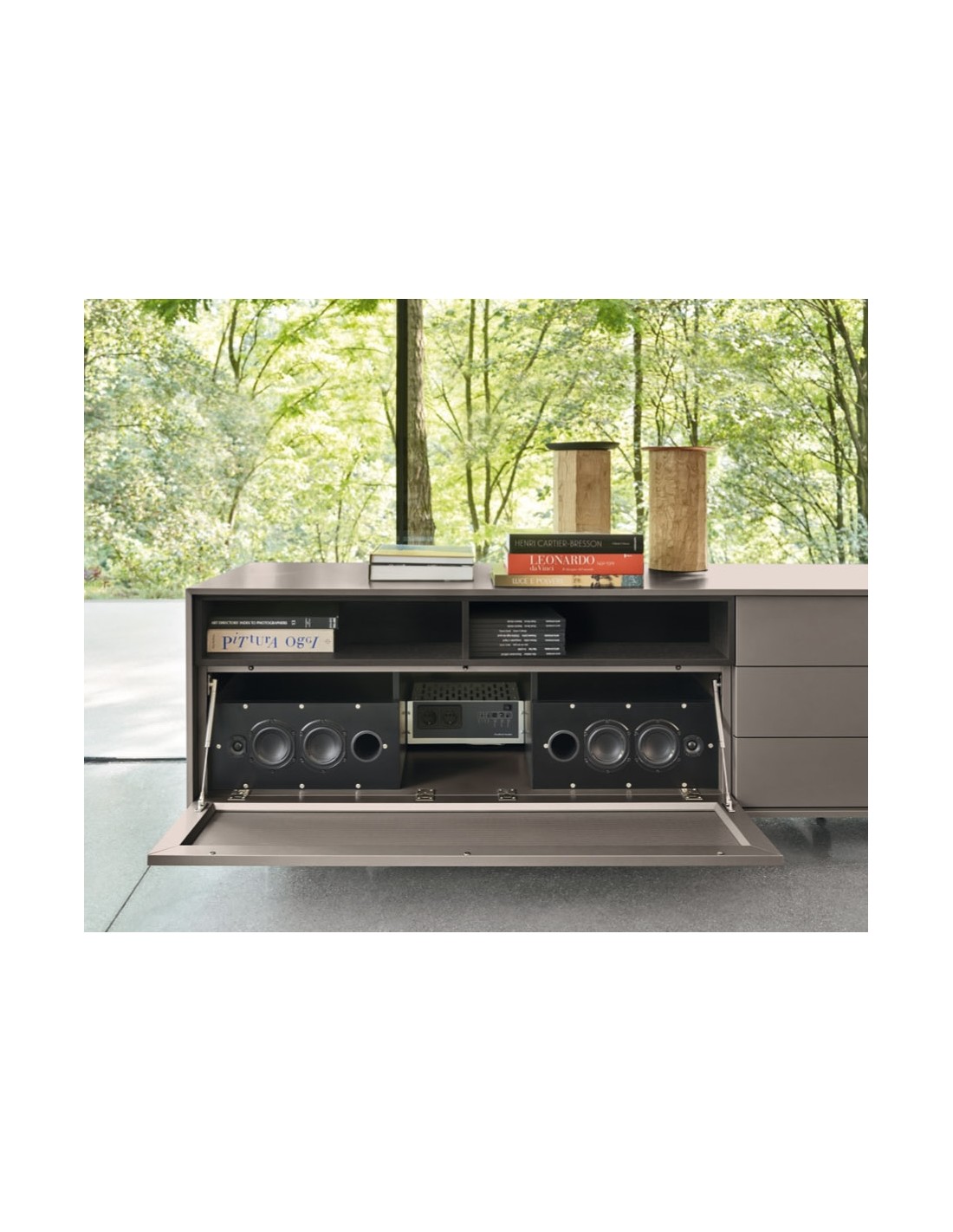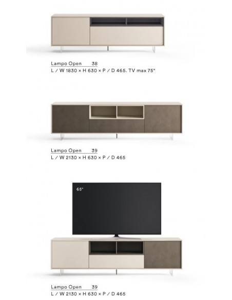 Il Mobile TV “Lampo Open” esprime un equilibrio raffinato tra estetica e funzionalità. Progettato per accogliere TV di varie dimensioni, con supporti orientabili che consentono di regolare angolo e visione, questo mobile integra soluzioni nascoste per i cavi, mantenendo un aspetto sempre ordinato. Le finiture disponibili — laccate, legno, metallo — lo rendono versatile, capace di inserirsi in ambienti minimal, moderni o più classici, sempre con stile e cura per il dettaglio.