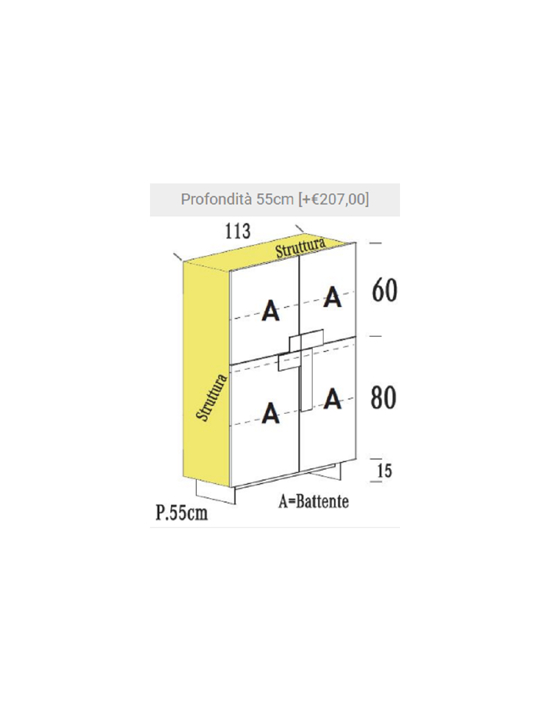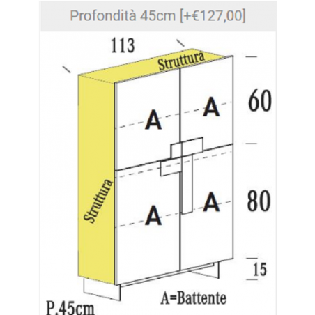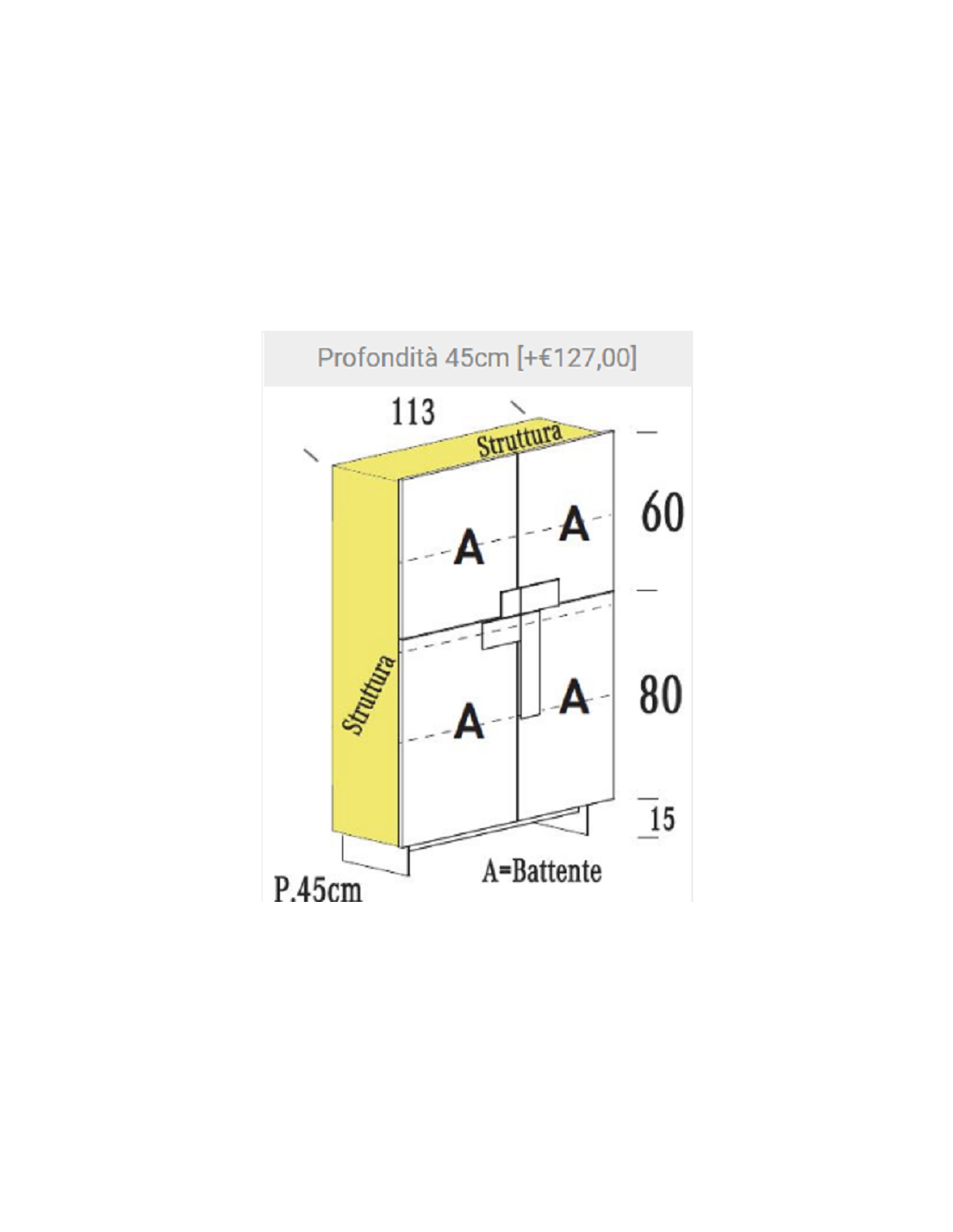 Al momento dell' ordine, specificare nelle note: Finitura/colore struttura, finitura/colore ante, finitura/colore maniglie