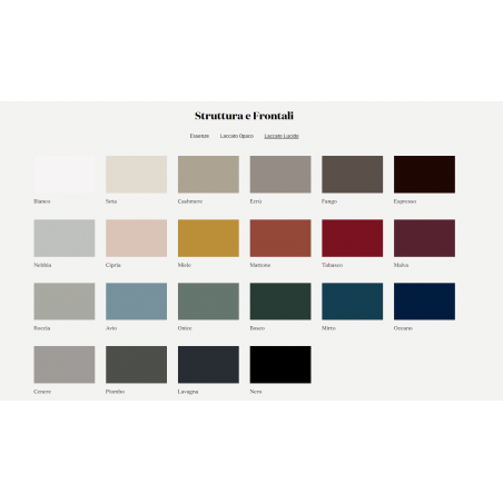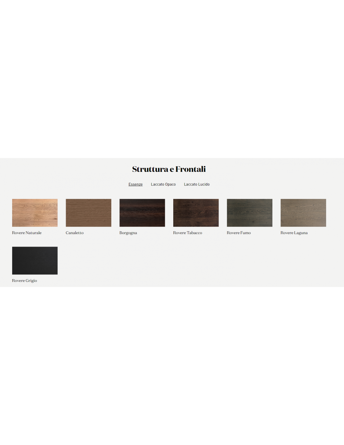 - Finiture frontali: laccato opaco, essenza, lucido spazzolato