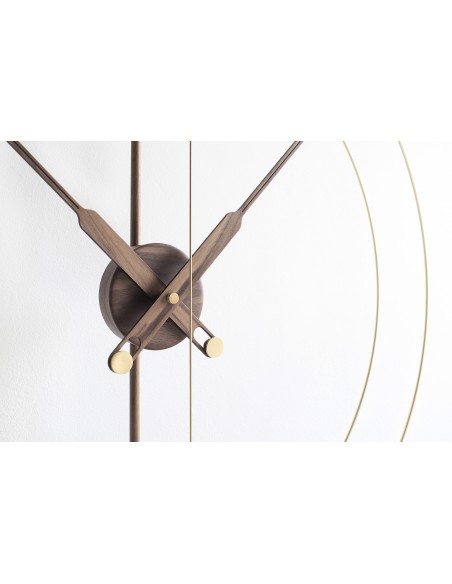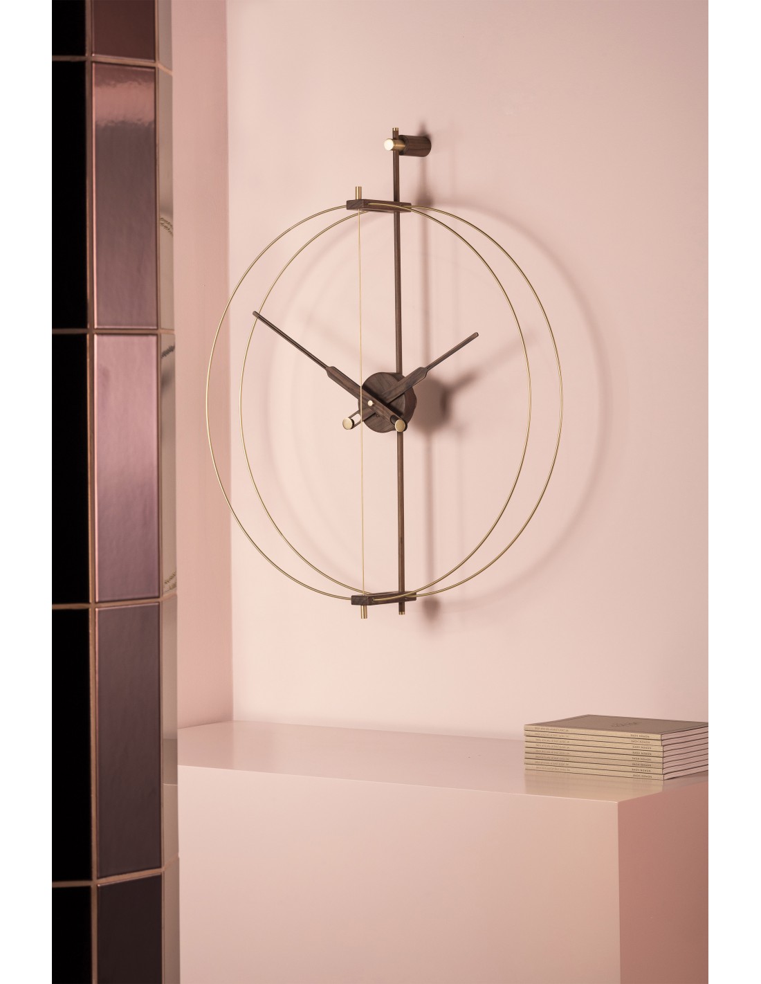 Mini Barcelona Premium Gold è la versione premium del modello Mini Barcelona, dove design, estetica e qualità continuano ad essere le caratteristiche prevalenti di questo orologio da parete. Si distingue la sua eleganza, che è il risultato della combinazione di elementi rifiniti in ottone lucido con altri in noce naturale, come le lancette ed il box centrale.