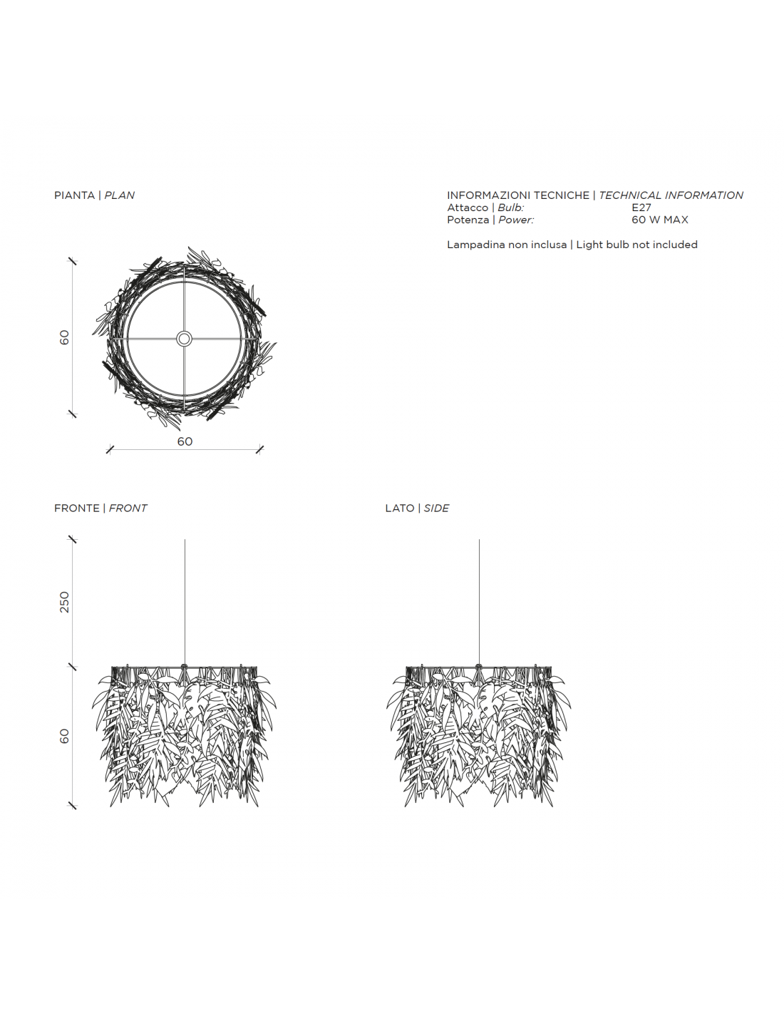 - Dimensioni: Ø 60 cm x H. 60 cm