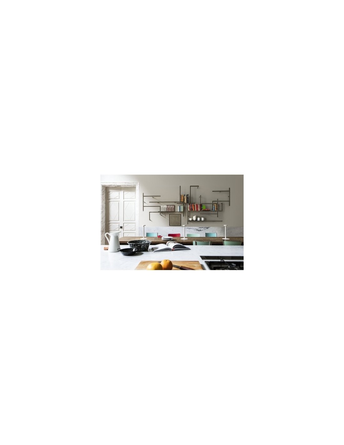 ANTOLOGIA è una libreria innovativa progettata da STUDIO 14 per il brand MOGG. Questo originale sistema di libreria, consente di personalizzare le proprie pareti posizionando uno o più moduli, da sfruttare tutti gli angoli e permettendo di sovrapporre gli elementi tra di loro. La struttura è un tubulare quadrato 2,5 x 2,5 cm con finitura verniciata bianco opaco oppure piombo lucido. Ogni modulo è provvisto di distanziali a muro che ne consentono l'ancoraggio tramite dei tasselli.